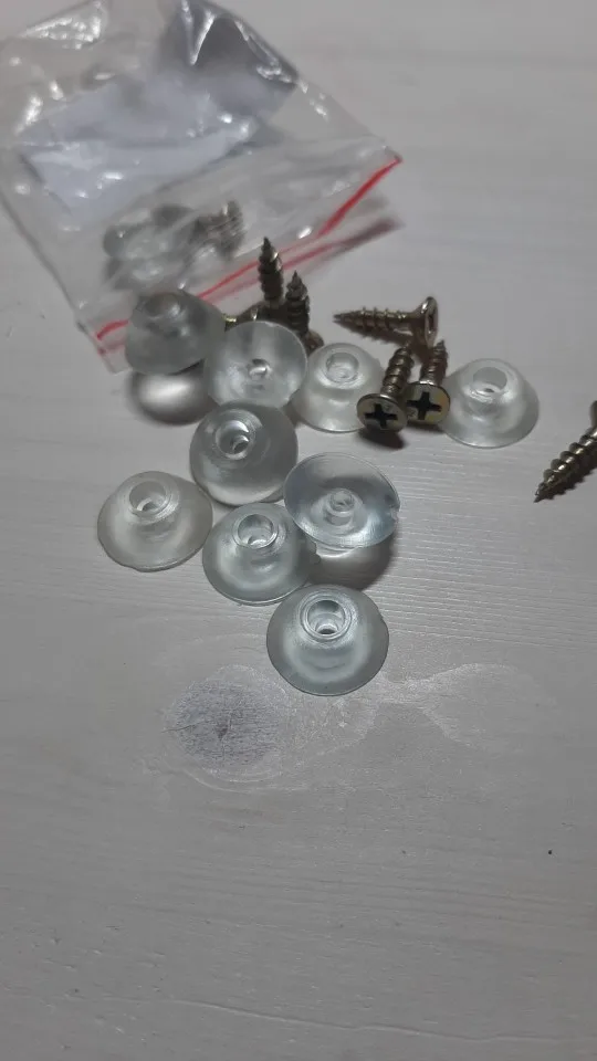 Использую подобные ножки разных размеров уже больше 3 лет. За поверхность цепляются замечательно, сдвигать изделия на таких ножках очень затруднительно, следов на мебели не оставляют. Под шурупы желательно подложить шайбы, их в комплекте нет. Рекомендую.