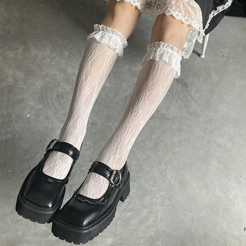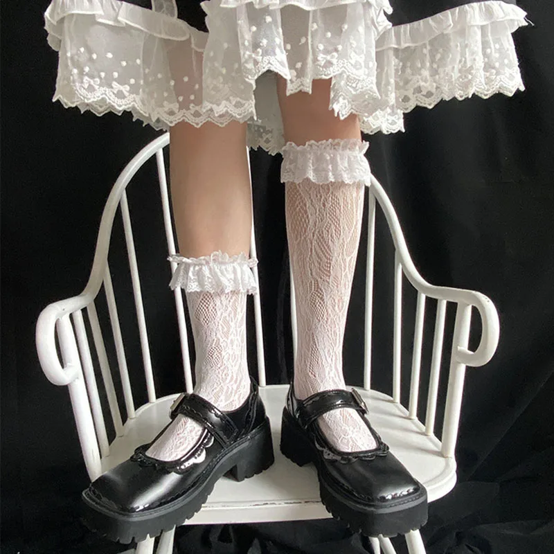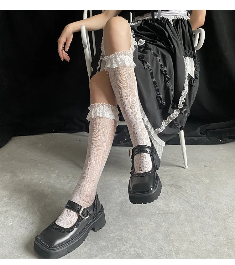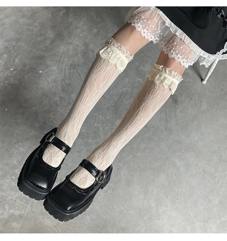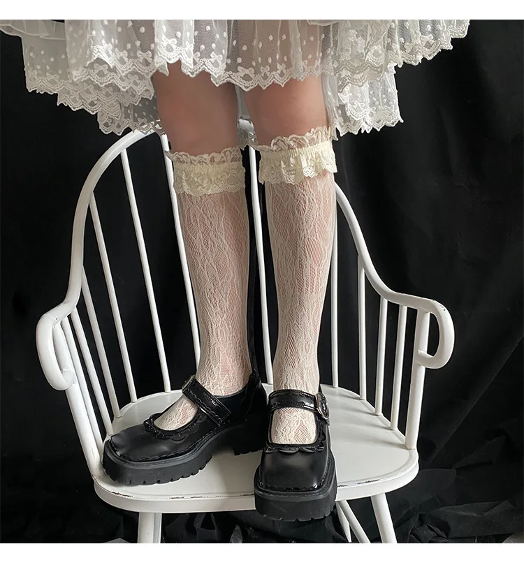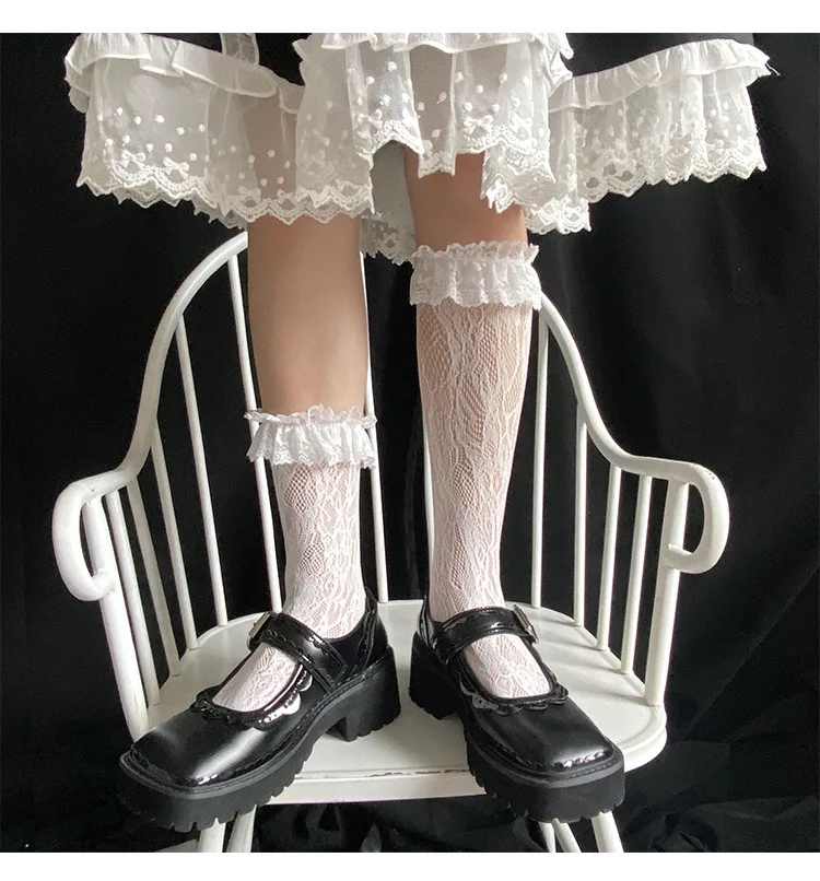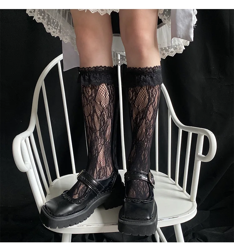 Сексуальные кружевные цветочные Высокие гольфы, женские длинные носки в стиле "Лолита", кавайные прозрачные тонкие колготки для девочек, чулки, платье Cospaly