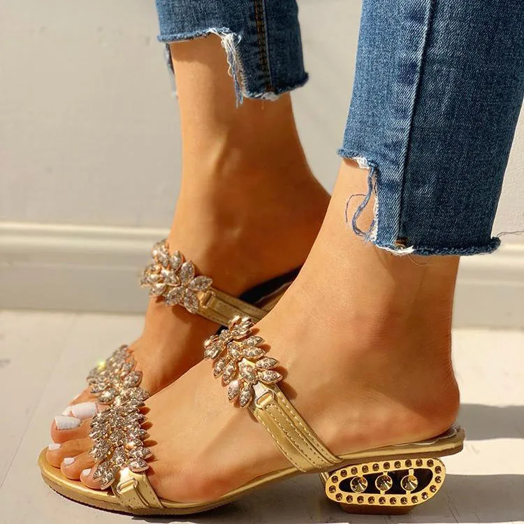 Новинка; Женские шлепанцы с кристаллами; Летние модные женские сандалии-стразы с лепестками