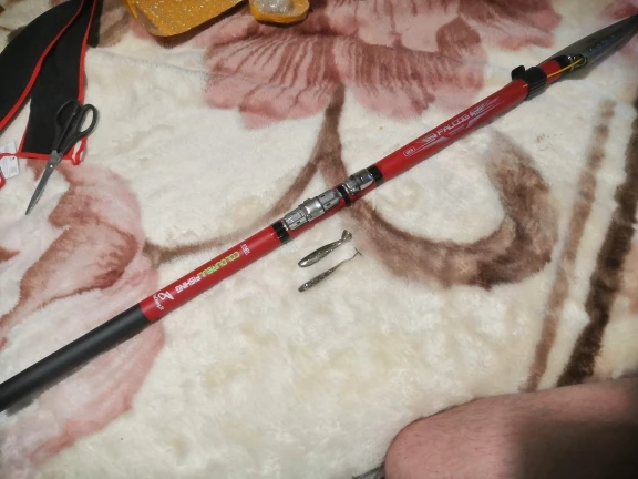 Доставка до Москвы около 2х недель. Доехало без повреждений. Упаковано на совесть, так, что еле распаковал :) Снасть лёгкая. Наконечник очень тонкий, внушает опасения, какого-нибудь леща наверное не выдержит, но для ловли мелочи с берега самое оно.. Продавец бонусом положил две силиконовые приманки. Рукоять полая, можно хранить мелкие аксессуары.