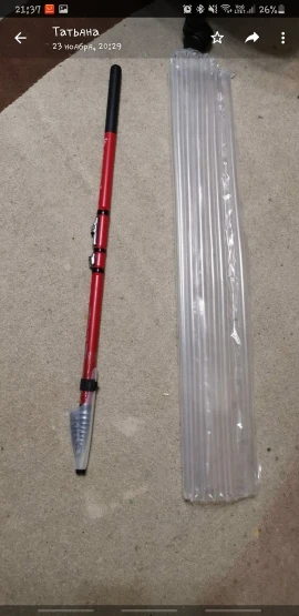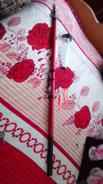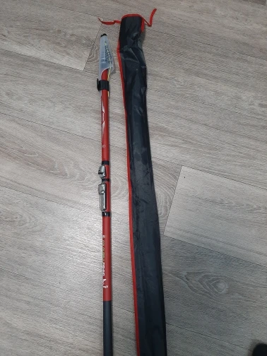 Удочка пришла быстро, упаковка на высоте, лежала в надутом воздухом защитном пакете, при транспортировке не повредилась, не сломалась. Я заказала удочку длиной 5.4 м в подарок папе. Удочка оправдала его ожидания: сделана аккуратно и качественно, без постороннего запаха, длинная, тонкая, легкая и прочная, упакована в защитный чехол. Яркая, красного цвета. Длина удочки в сложенном виде 79 см. В подарок к заказу продавец положил две силиконовые рыбки-приманки, мелочь, а приятно. Жаль, что сезон закончился, в деле проверим удочку только летом, на рыбалке.