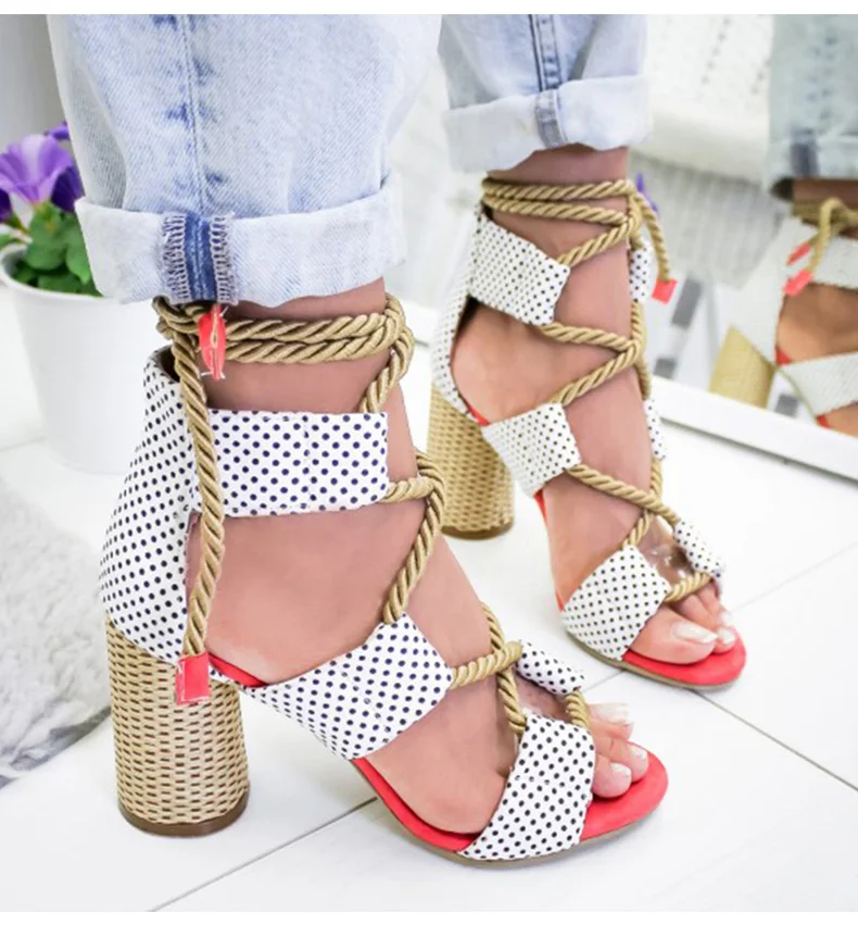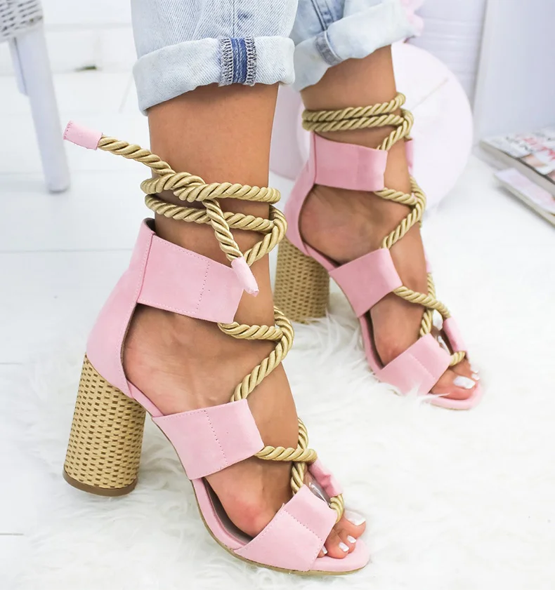 Women Sandals Lace Up Summer Shoes Woman Heels Sandals Pointed Fish Mouth Gladiator Sandals Woman Hemp Rope High Heels Shoes