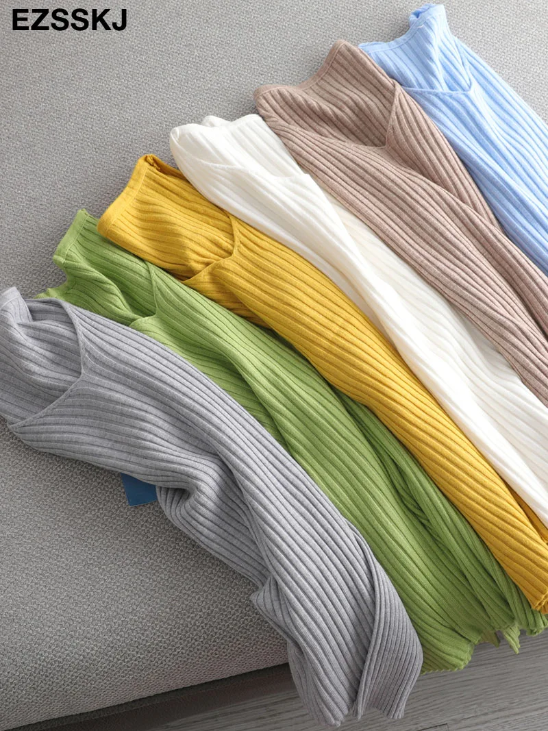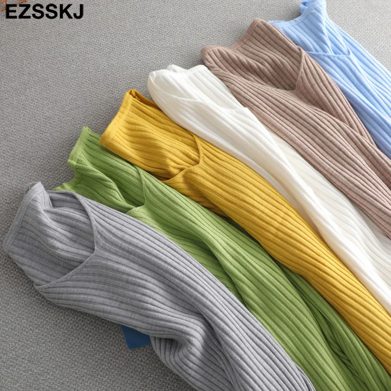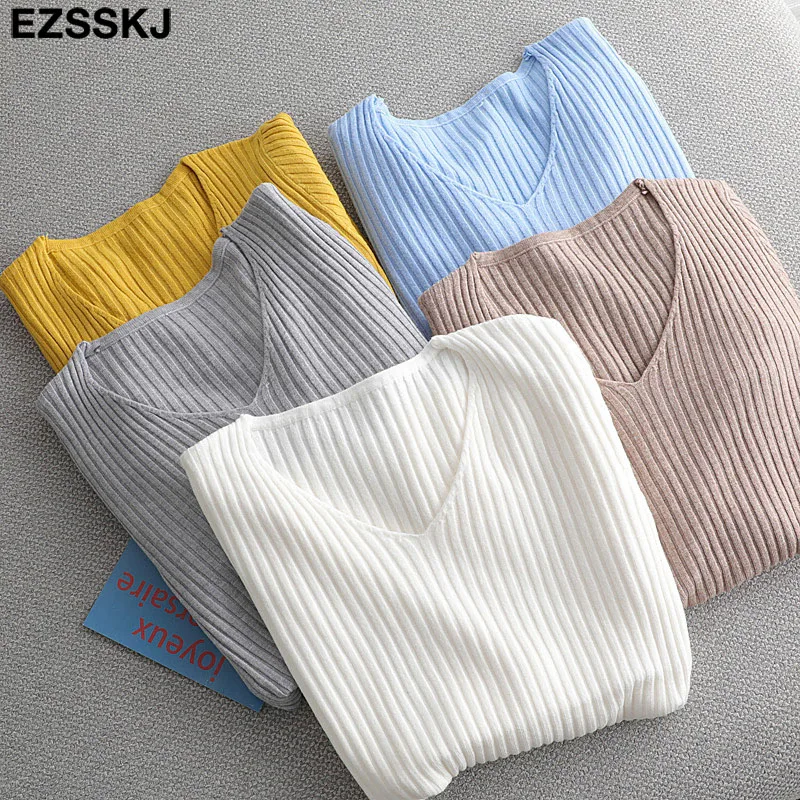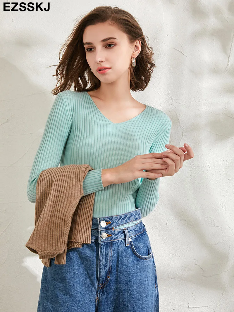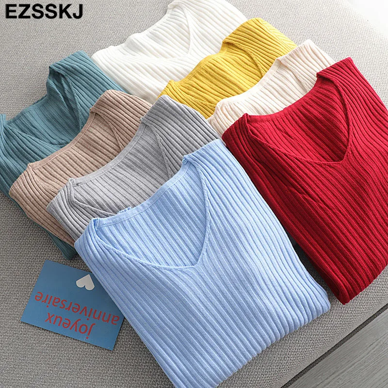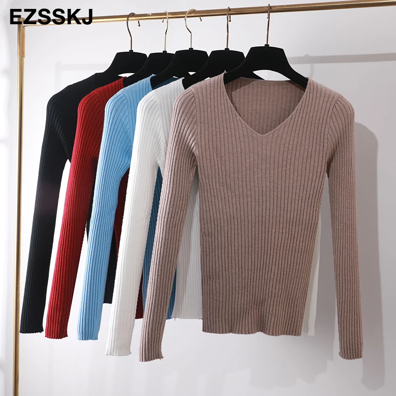 2021 базовый однотонный осенне-зимний свитер с V-образным вырезом, пуловер, Женский вязаный свитер, облегающий недорогой свитер badycon с длинными рукавами