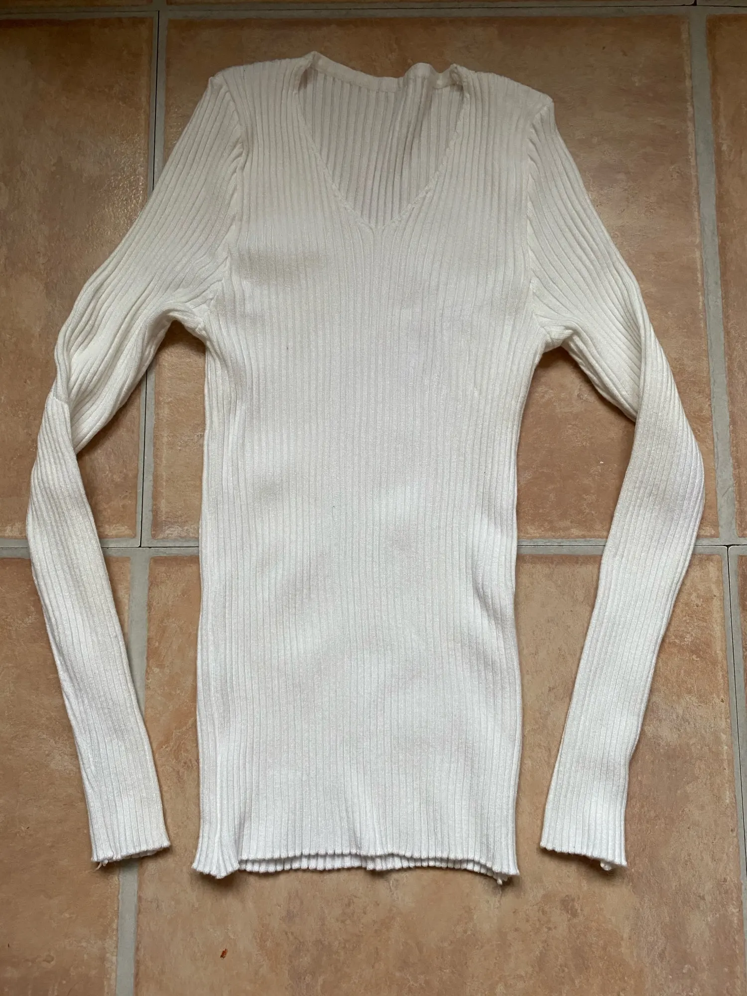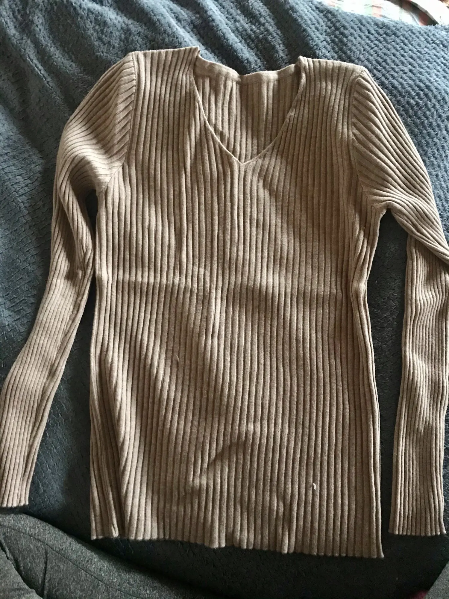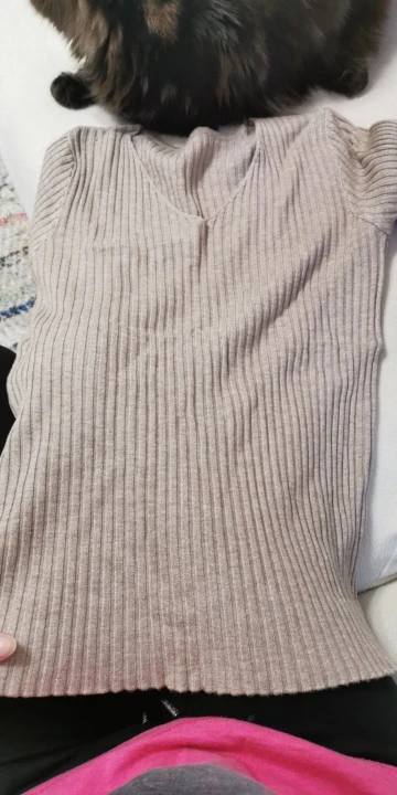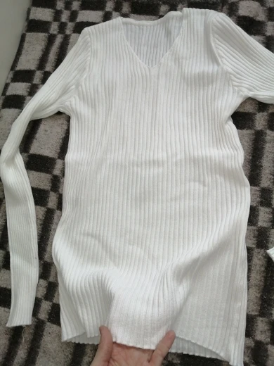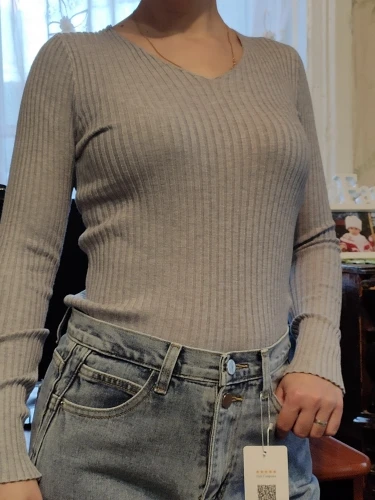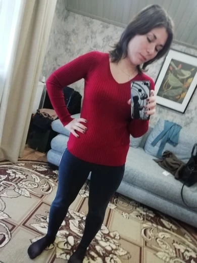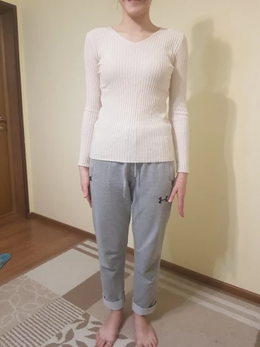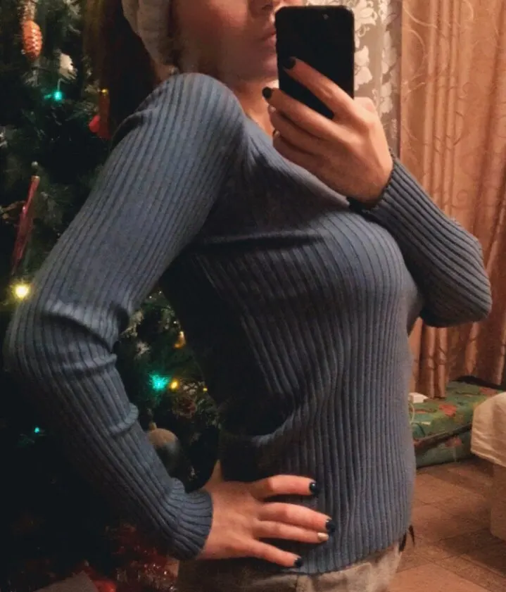 Товар пришел быстро. Мягкий трикотаж, приятный, но оочень тонкий и просвечивает. На прохладное лето, осень, весну (не на зиму). На рос.40 размер сидит свободно в талии и наверное в груди, т.к. немного около подмышек топорщится ткань, рукава нормальные в обтяг, но сама кофта длинная. Ещё, один рукав оказался длиннее другого на 4,5см и швы на плечах в разных местах, один сидит на месте, другой выше, прям между шеей и плечом (на фото слева, не очень заметно т.к. пыталась спустить шов на место, но он поднимается при движении, со вторым все нормально). Хорошо что у данного продавца есть бесплатный возврат, оформила, отправила, деньги вернули примерно через 10 дней с момента отправки. За это 5 звезд. По фото мне очень понравилась кофта, базовая, так ждала ее, но ожидание не совпало с реальностью, и вторую такую перезаказывать не буду, бывают намного лучше