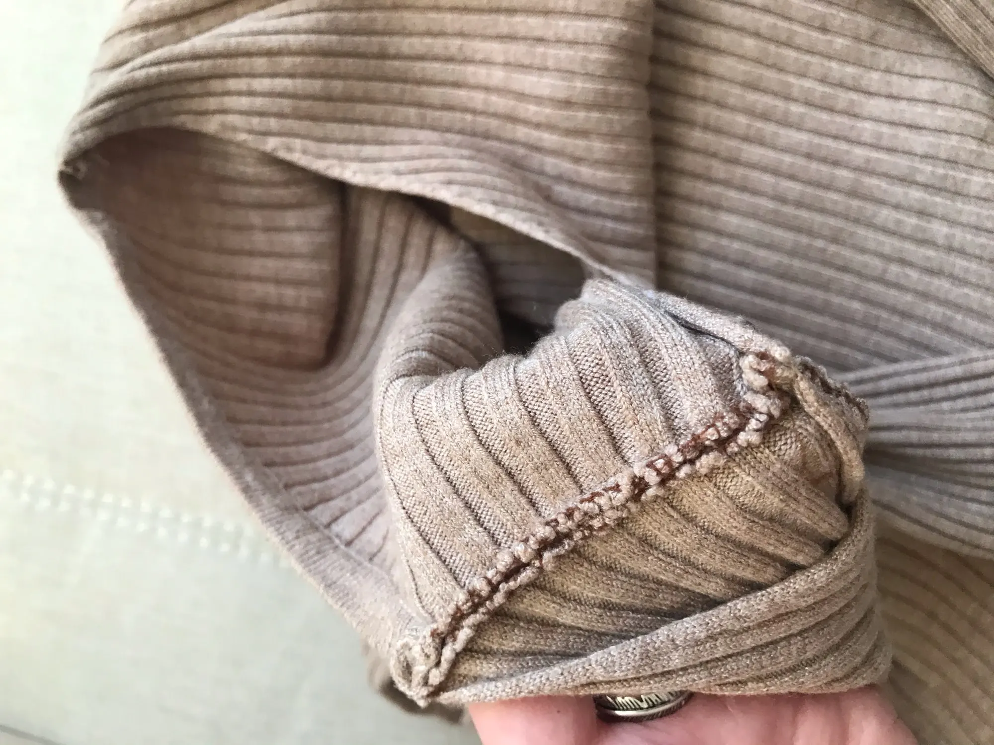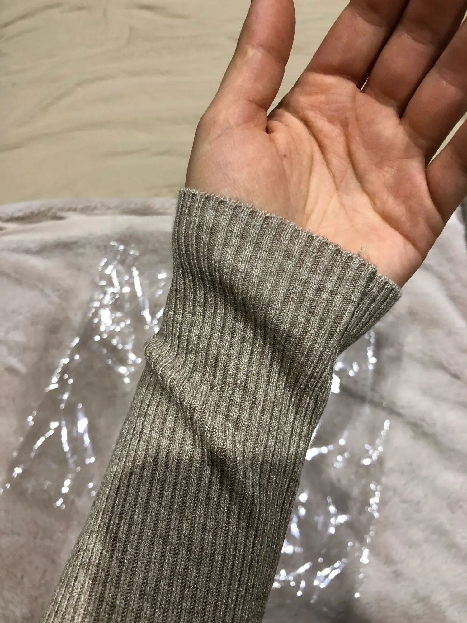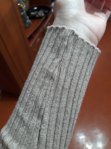Посылка прибыла в Москву за 12 дней с момента заказа. Упакована была в индивидуальный и почтовый пакеты. Какой-либо запах отсутствовал вообще. Заказывала два цвета, черный и хаки. Кофточки почти полностью соответствуют фотографиям в карточках товара, включая фактуру ткани, обработку горловины, рукавов, низа. Черный цвет действительно угольно-черный, хаки не такой розовый, как на фото, больше уходит в беж. Швы ровные, затяжек нет, было пару торчащих ниточек там, где заканчивался шов (нитки эти завязаны узлом, так что думаю, что швы не разойдутся, выглядят достаточно крепкими). Кофточки не зимние, они достаточно лёгкие, но не просвечивают. Нужно учесть, что черная кофточка чутка плотнее, чем бежевая. На фигуре сидят хорошо, на мои параметры (170, ОГ 87, ОТ 61, ОБ 86) в руках в облипку, между туловищем и кофточкой есть достаточно воздуха. Ткань очень приятная к телу, мягкая, не электризуется. Если после стирки и пары носок с ними что-то станет - дополню комментарий.