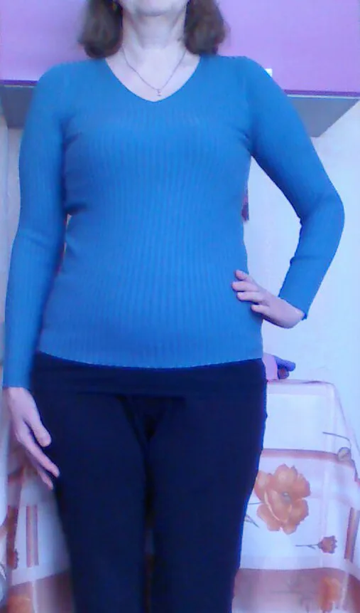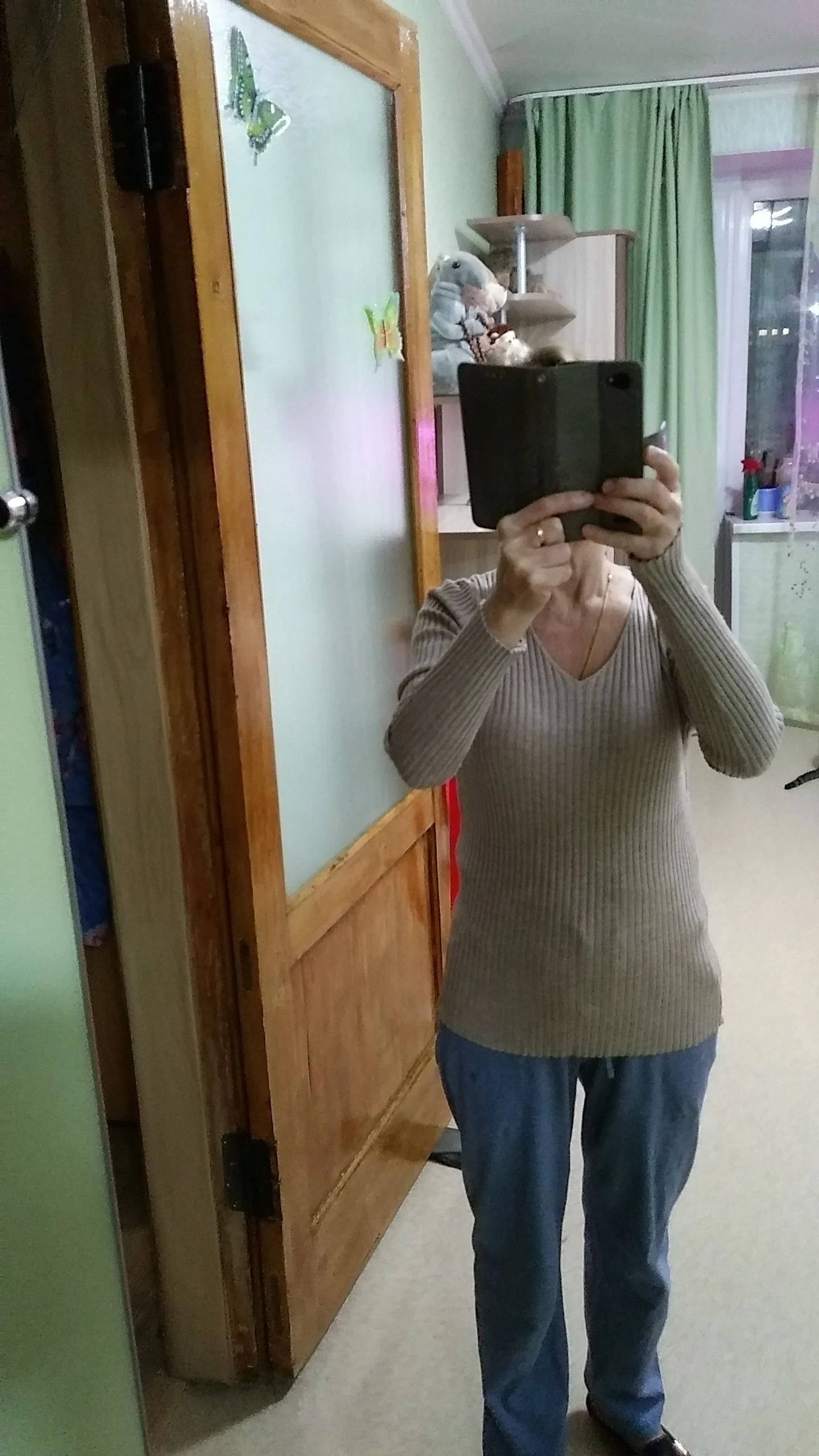Ношу 44-46 российский. Заказывала в трех цветах. Очень порадовала НОРМАЛЬНАЯ длина рукавов и самого изделия!!! На серо-голубой есть небольшой брак на горловине - не провязана в одном месте краевая линия. Но, надеюсь удастся как-то прихватить. В целом товар хороший, можно брать! Пришло довольно быстро!