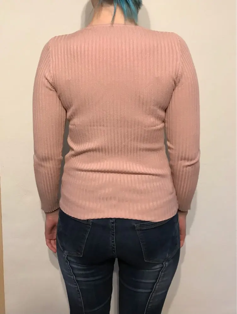 в жизни розовая кофта бледнее, я с ней сливаюсь. но решила оставить, очень мягкая, приятная, базовая вещь, пригодится.