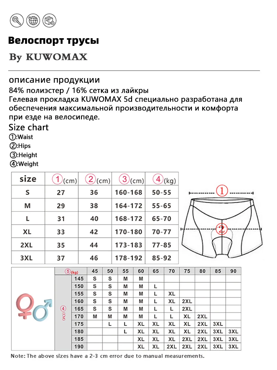 KUWOMAX Cycling Jersey Men Bicycle Mountain MTB Shorts Pro 5D Gel Pad Shockproof Cycling Underpant to 9D Gel Bike Underwear