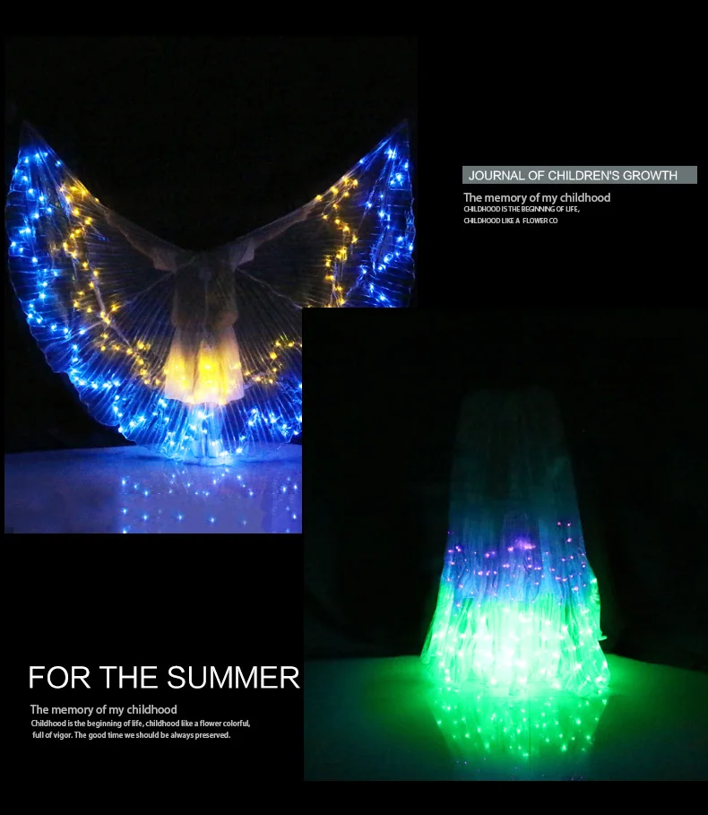 Танец живота светодиодный крылья Красочный светодиодный Танец Реквизит новейший светодиодный крыльев Исиды взрослых танец живота Профессиональный Аксессуар без палочек
