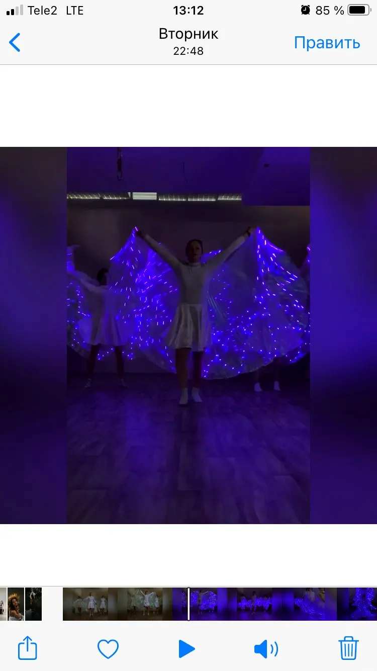 Офигенные крылья, все супер, работают! Я заказывала три штуки фиолетового цвета, на рост 175 подошли нормально, от пола до крыльев есть немного расстояния. Правда вот на самом ремешке крепления к шее и расположен аккумулятор с тремя батарейками и он немного тянет назад, тем самым отчасти душит. Можно прикрепить к кофте и в целом нормально. При полной темноте светят как на фото. Жалко, что нету палочек в наборе( Единственный минус(