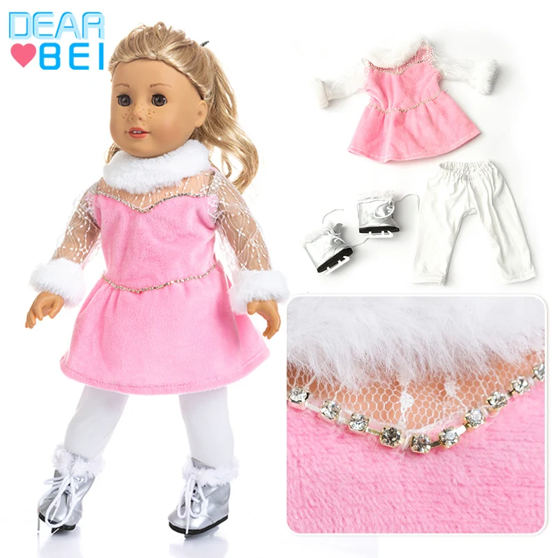 Костюм для катания на коньках для 18-дюймовой американской девочки, куртки + брюки и аксессуары для кукол, лучший подарок для детей (обувь в комплект не входит)