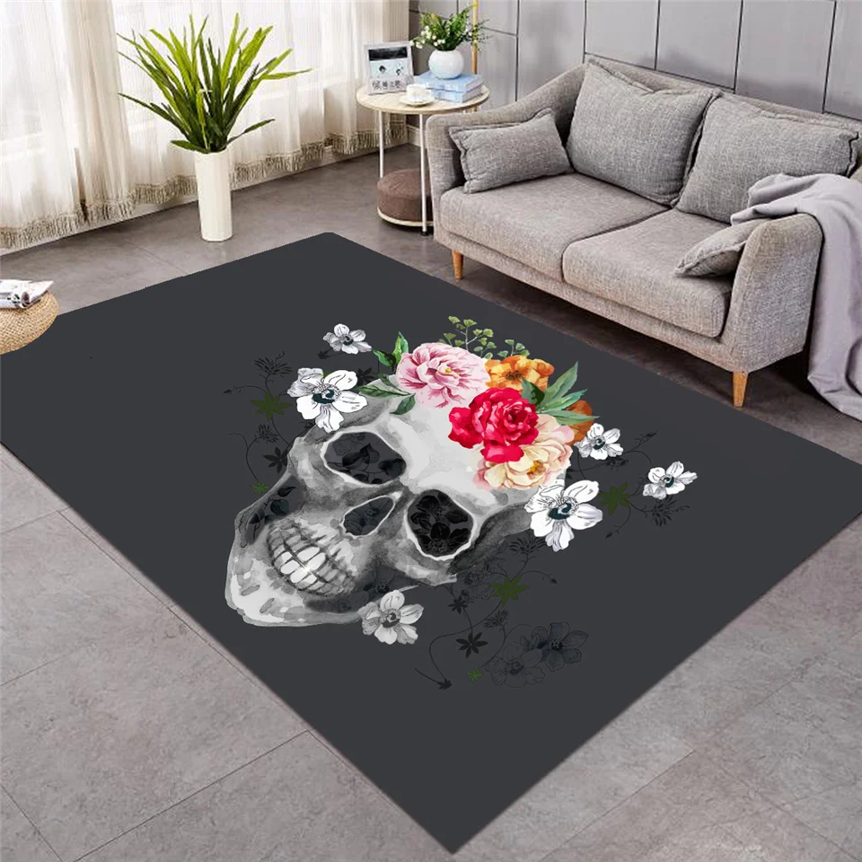 Постельные принадлежности на выходе, сахарные коврики с черепом, большие, для гостиной, цветочные, для спальни, коврики, Нескользящие, готический пол, домашний декор, alfombra