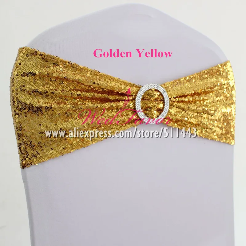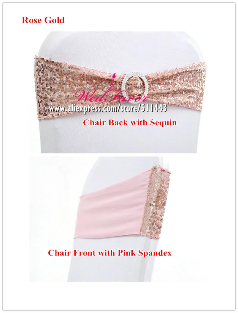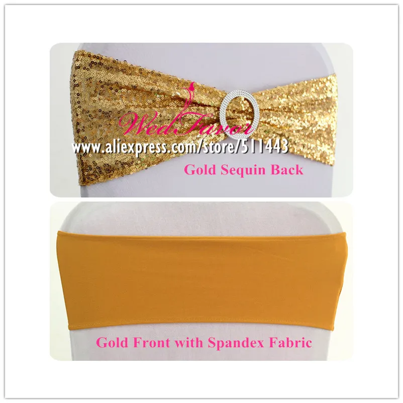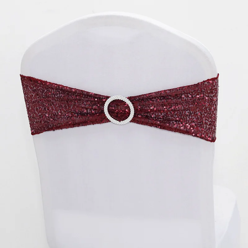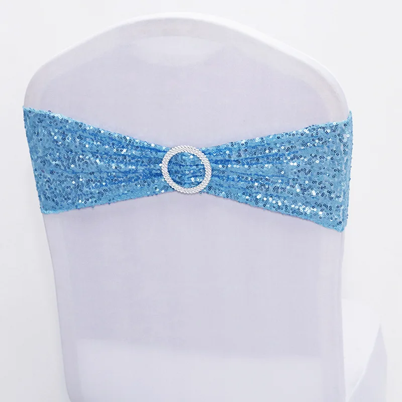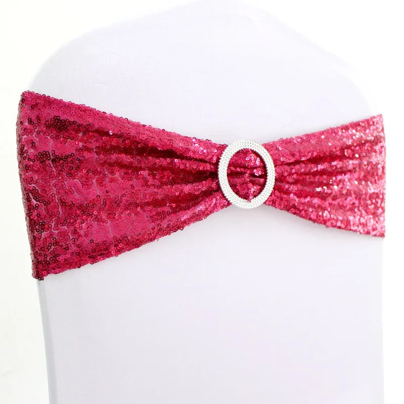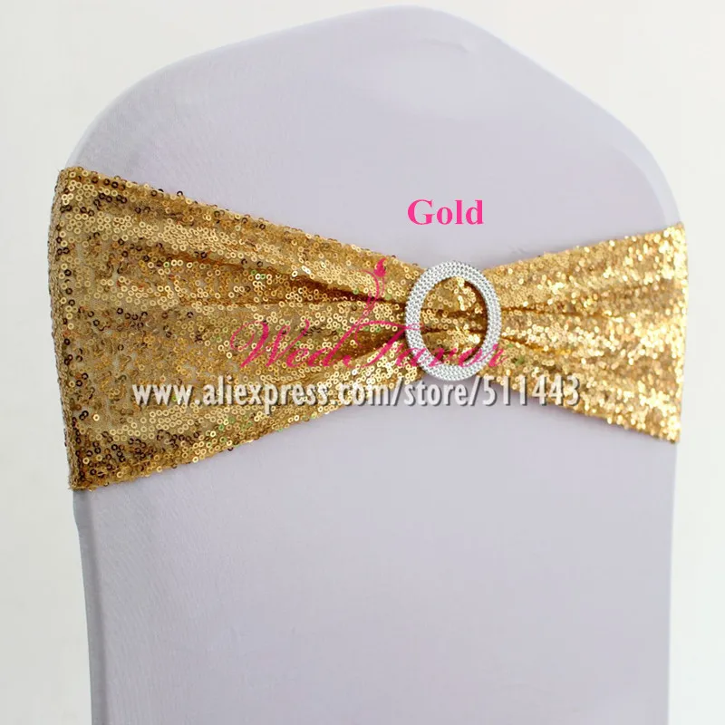 20 шт. розовое золото серебро спандекс пайетки стул Бант пояс лайкра стрейч Блеск повязка на стул с круглой пряжкой для отеля вечерние ринки свадьбы
