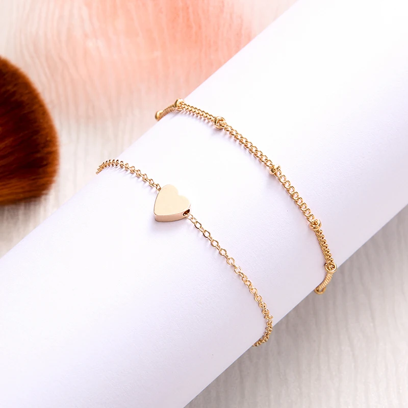 Очаровательные двухслойные браслеты в форме сердца для женщин золотые милые романтические свадебные эффектные ювелирные изделия оптовая продажа Лучший подарок