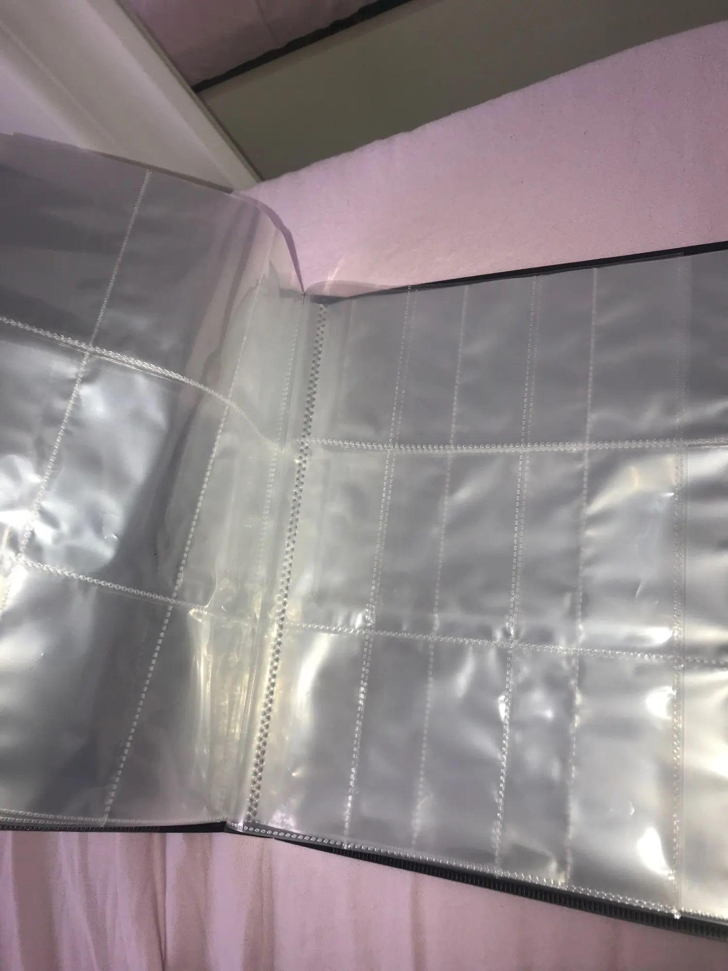 Так. Начну с того, что биндер не плохой. Но, если честно, в одном моменте он меня разочаровал. К сожалению, кармашки для карт находятся только с одной стороны листа, из-за чего неудобно складывать карты в ячейки. Но к этому можно привыкнуть. В остальном же биндер отличный. Вмещаются карты чуть больше обычных