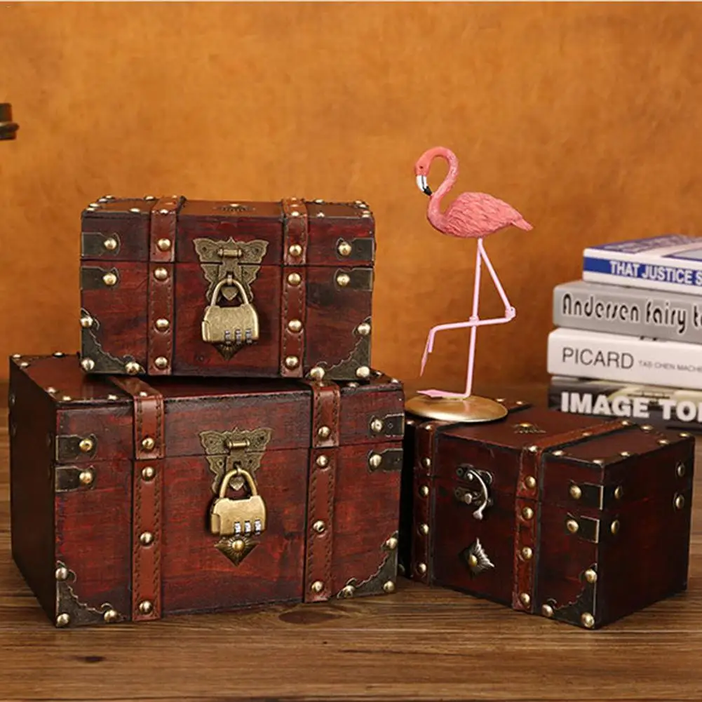 Шкатулка для хранения ювелирных изделий, винтажный декоративный бокс с деревянным замком, для хранения цепочек, сокровищ, органайзер, держатель с украшениями, демонстрационный чехол