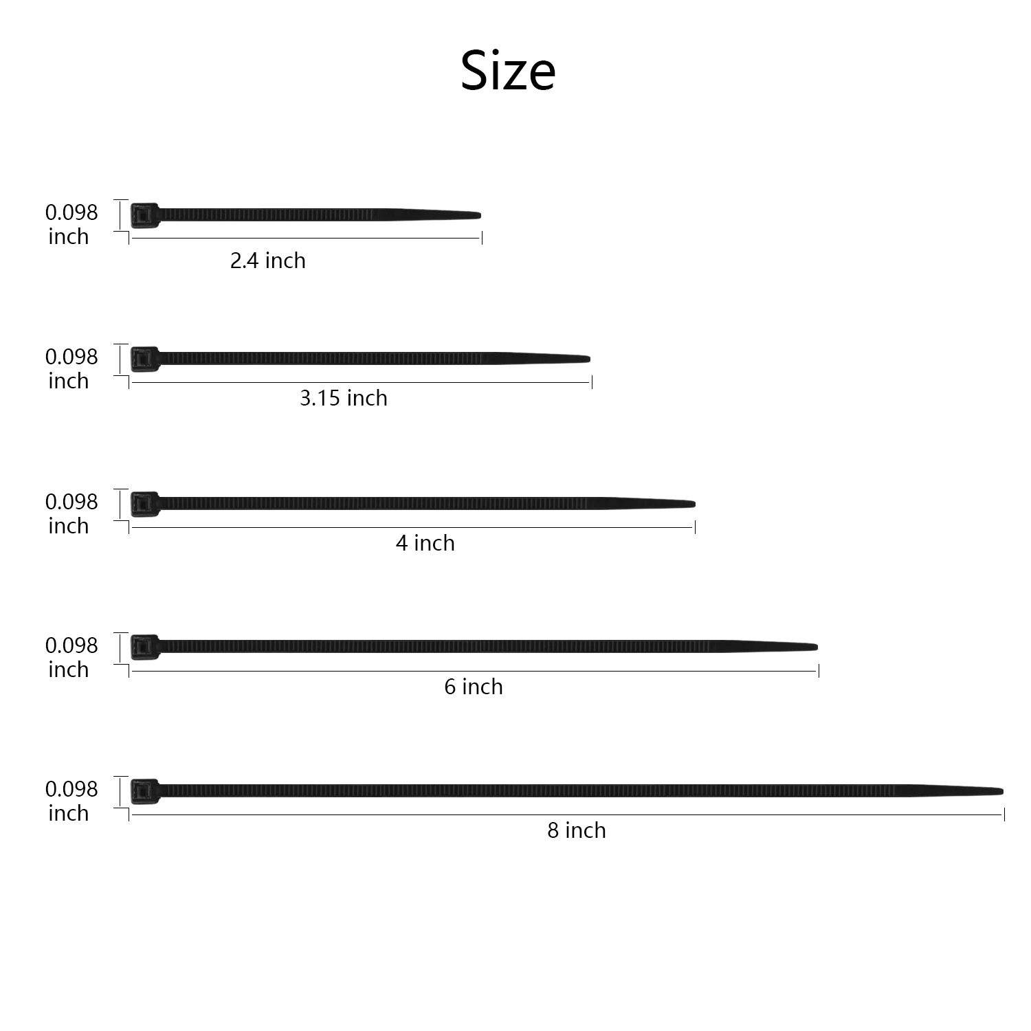 Кабельные стяжки Нейлоновые, 3x60, 3x80, 3x500, 3x100, 3x120 мм, самоблокирующиеся, черные, для дома, офиса, сада, мастерской, 150 шт.