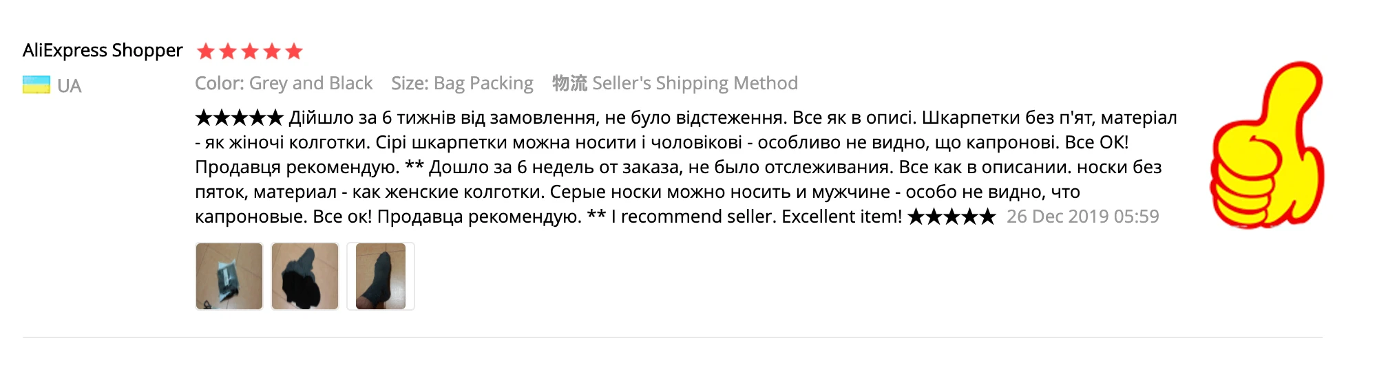 Перед заказом не ознакомилась с отзывами. Пришли носки быстро, но как женские капроновые. Заказала мужу, но придётся самой носить.