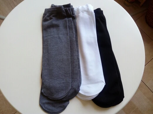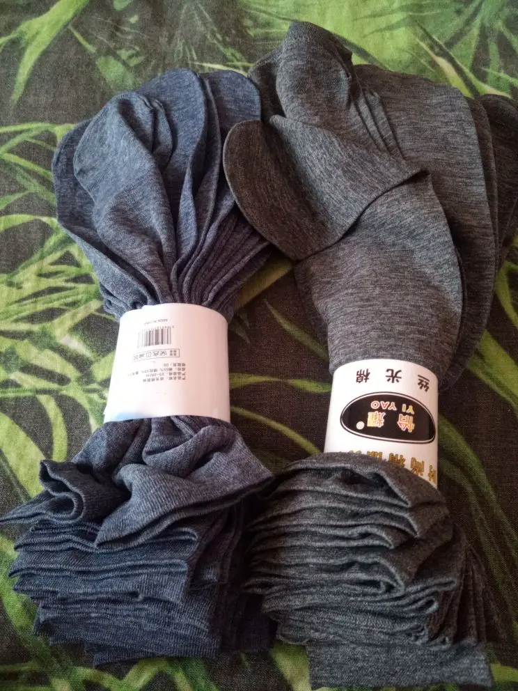 Очень тонкие носки, как колготки женские. Плохо прошиты, нет пятки. Смотрите последнее фото, оно самое реальное. Приходят в обычном пакете. Первый раз повёлся на рейтинг не прочитав комментарии и вот попал на не очень хороший товар.
