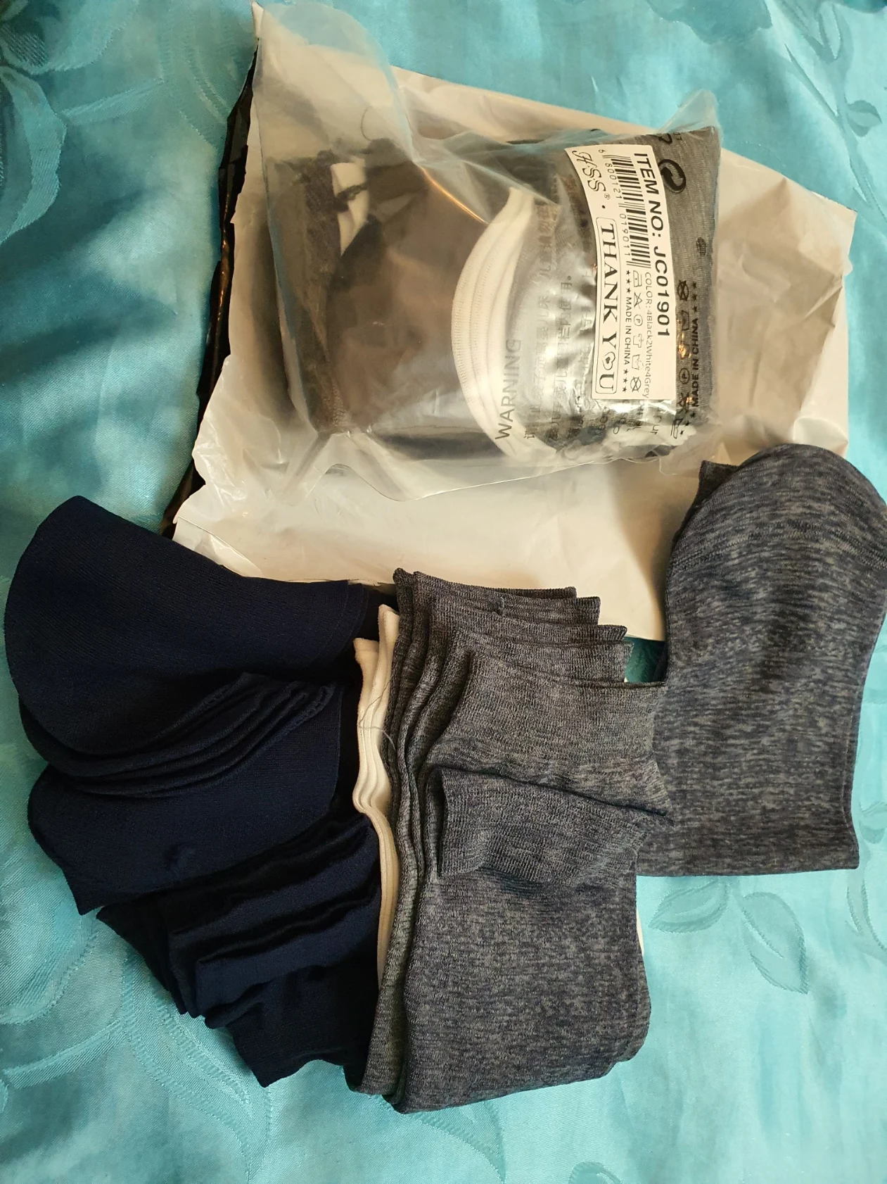 Дошло до Магадана за две недели. Это рекорд, обычно 1.5-2 месяца посылка идет. Сами носки тонюсенькие, похожи на капроновые женские колготки. Пятки нет, одевай как оденется. Отдал жене, она рада...