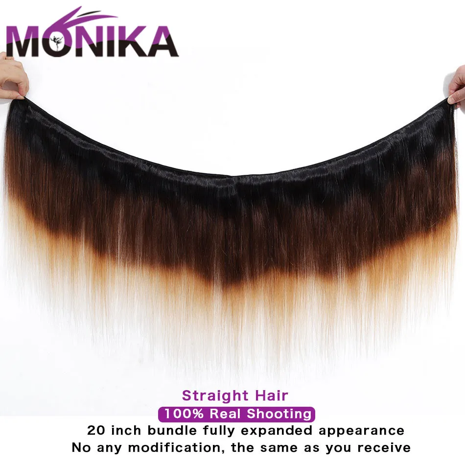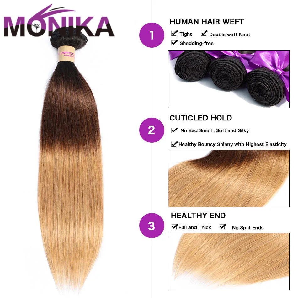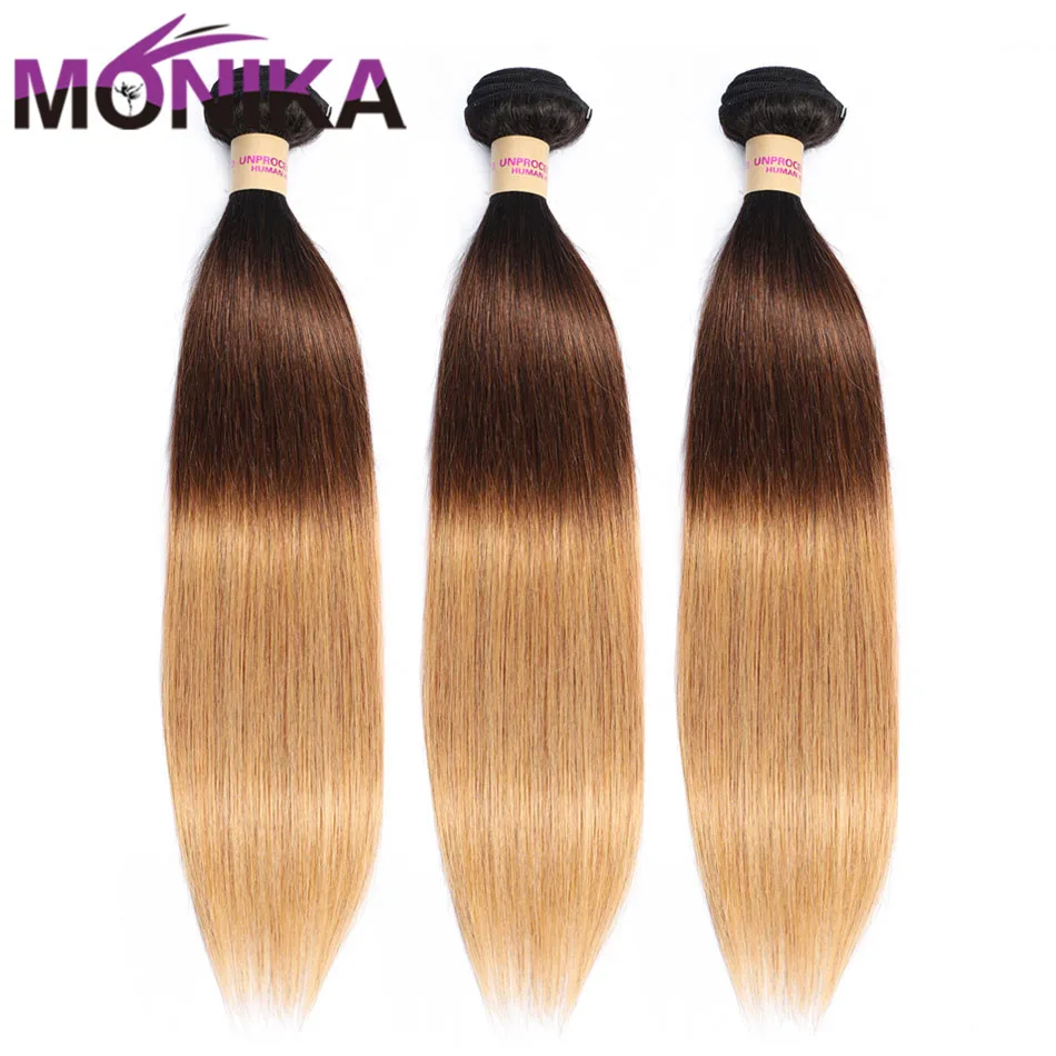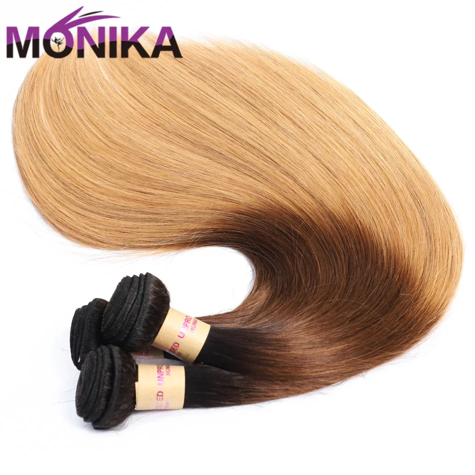 Моника пре-Цветной волосы пряди T1B427 эффектом деграде (переход от темного к непутающиеся вьющиеся волосы бразильские человеческие волосы прямые волосы 3 пряди не Реми Мёд светлые пряди