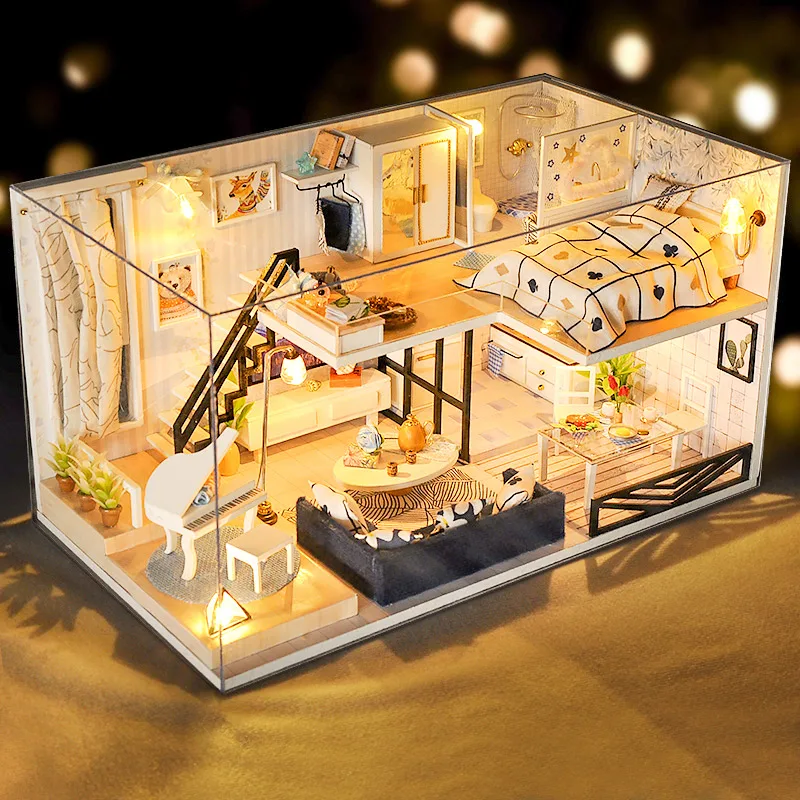 Кукольный дом CUTEBEE сделай сам, деревянные кукольные дома, миниатюрный кукольный домик, набор мебели, игрушки для детей, рождественский подарок, TD32