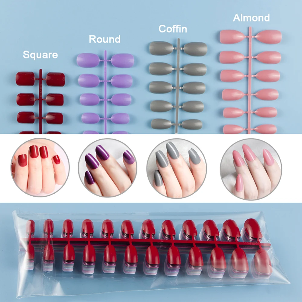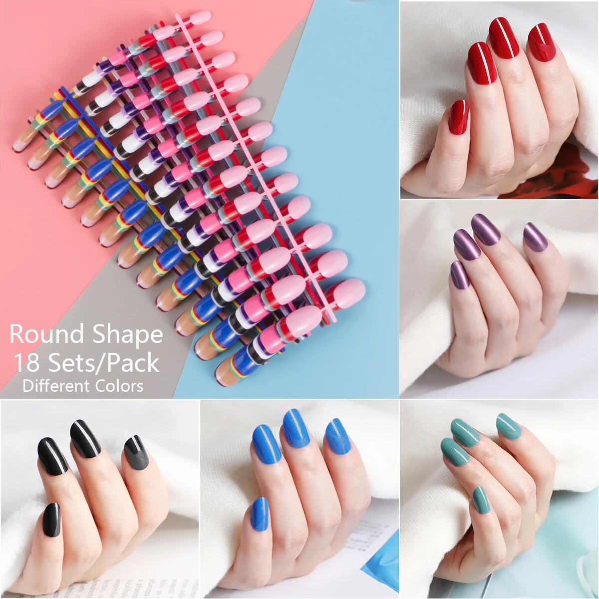Накладные гробы, Короткие акриловые квадратные круглые ногти, 18 цветов, накладные ногти на шпильках, Типсы, пресс на ногти