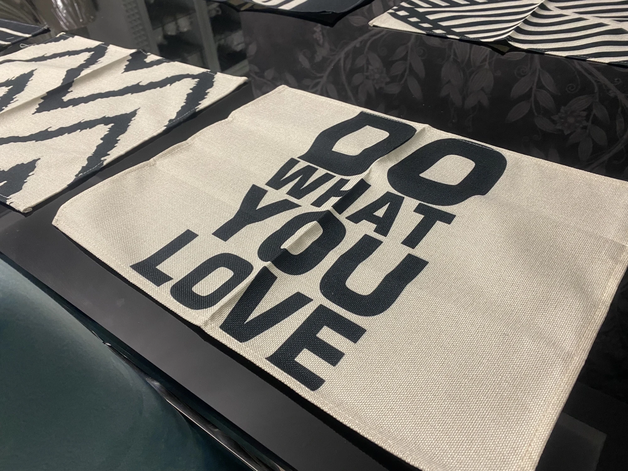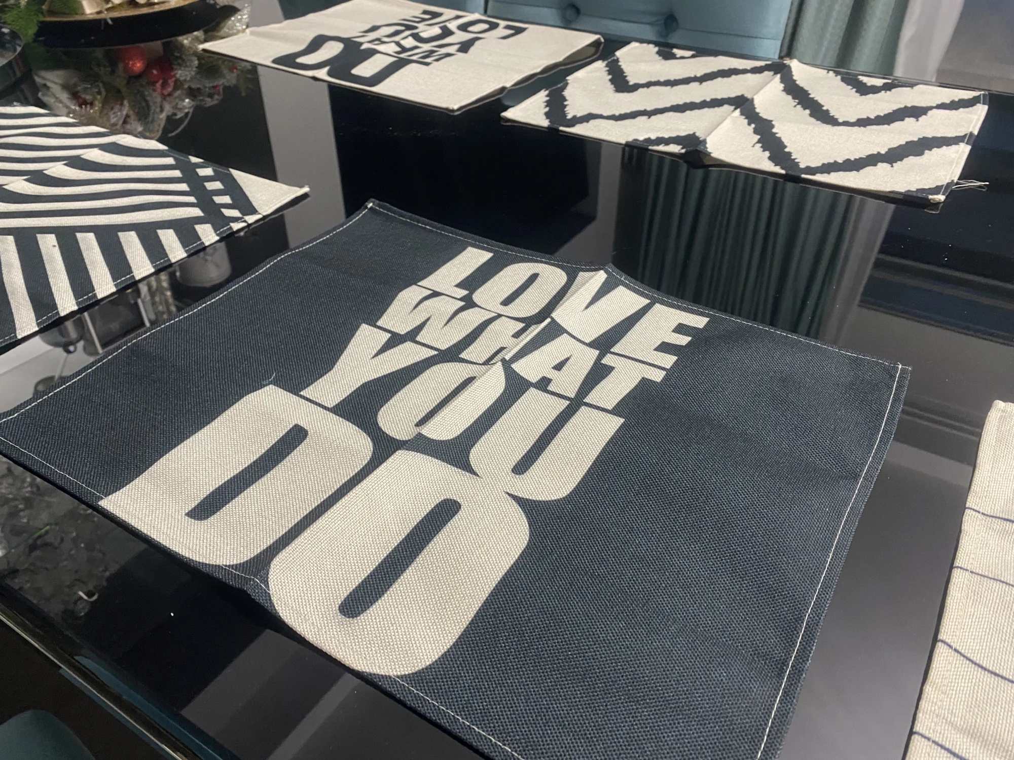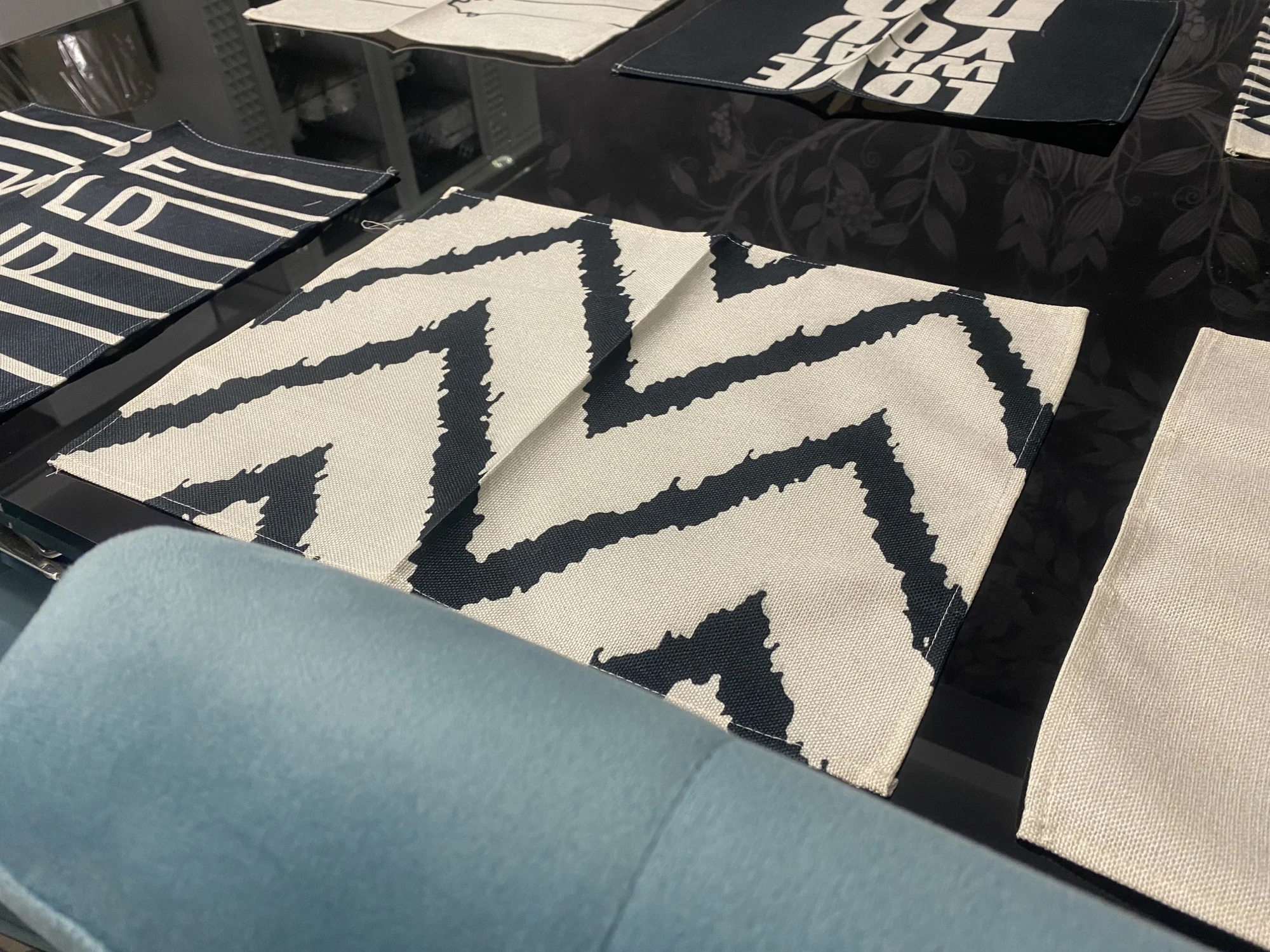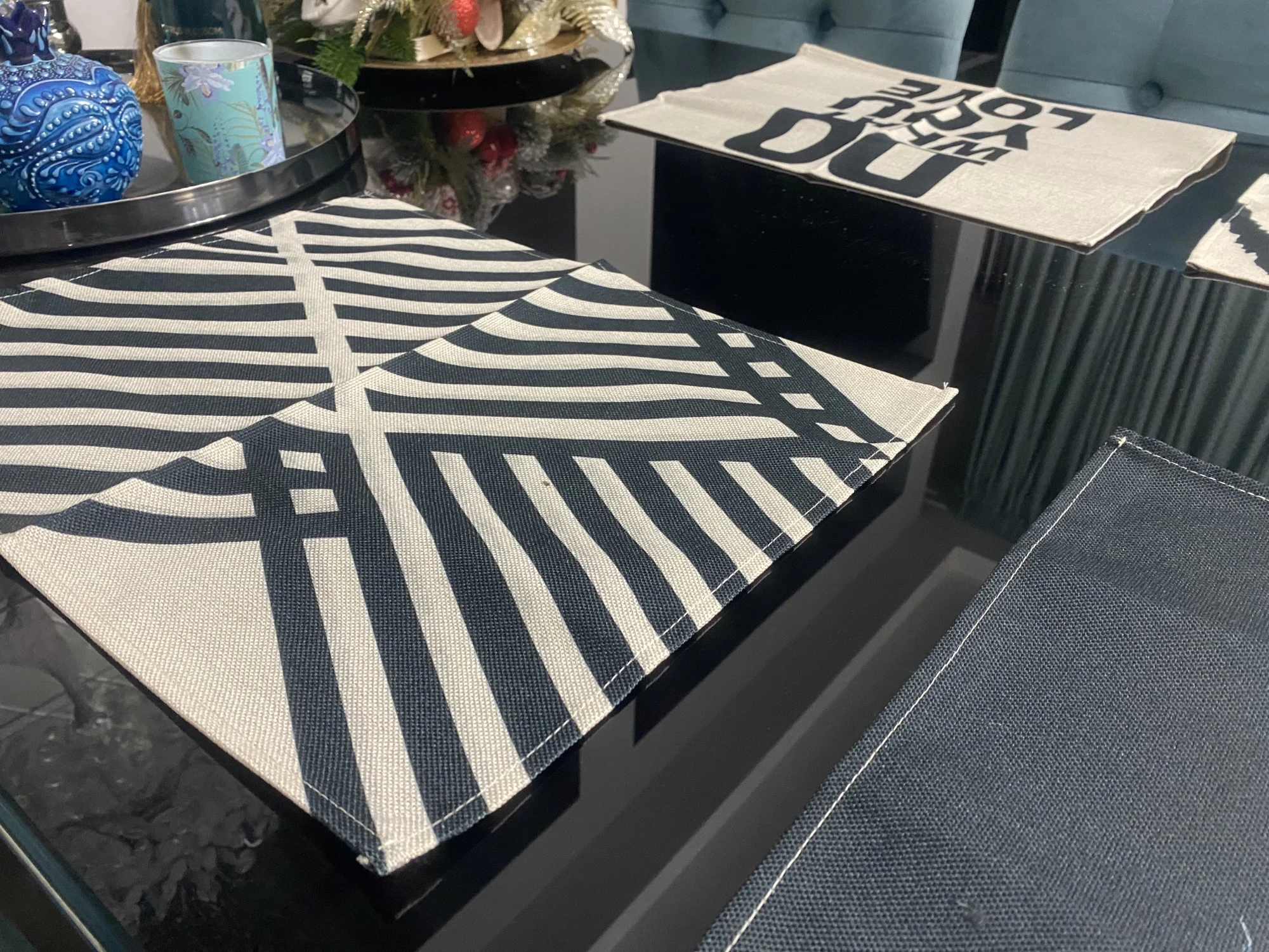 Черный комплект с геометрическим рисунком, узор обеденный стол ковр...