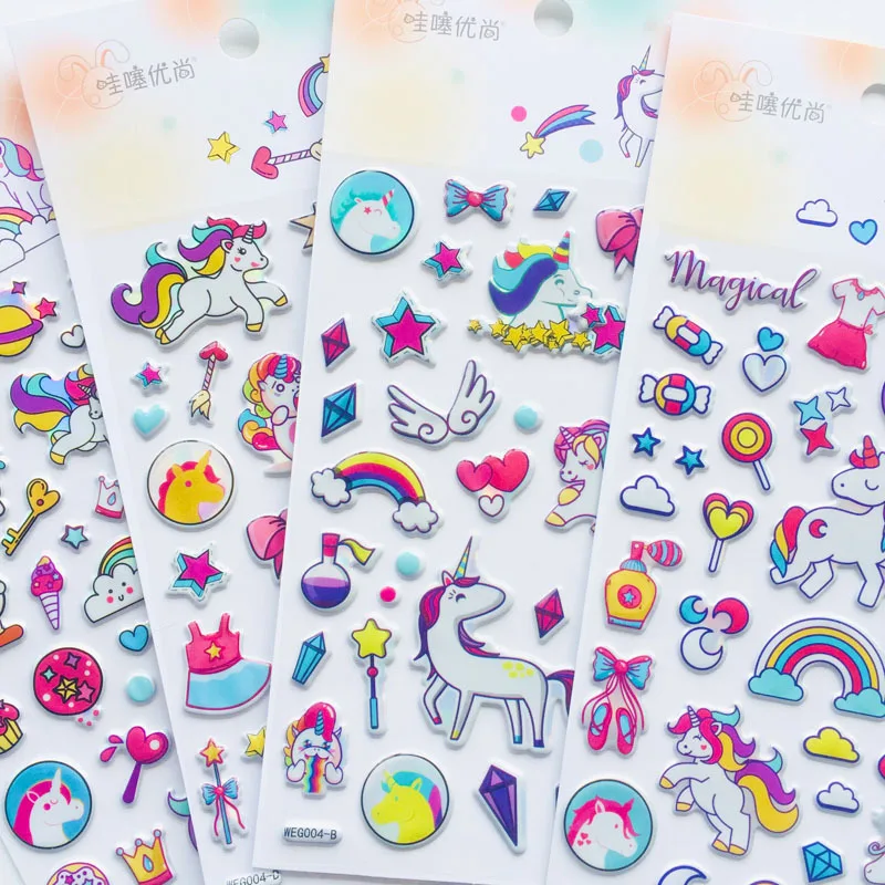 Радуга Единорог губка пузырь 3D декоративные наклейки, дневник альбом этикетка наклейка, сделай сам, Скрапбукинг Канцелярские наклейки