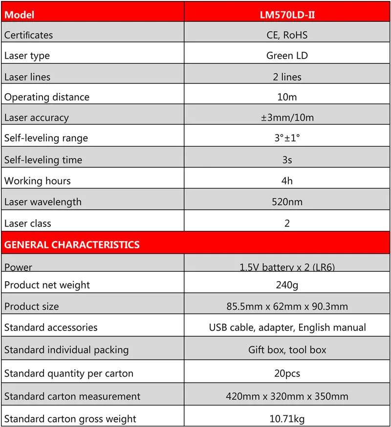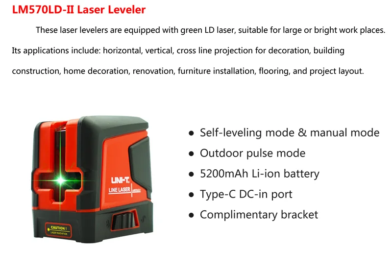 UNI-T LM570LD-II зеленый лазерный уровень; Портативный 2-проводной перекрестный измерительавтоматический Anping