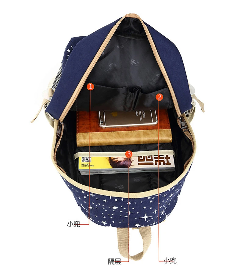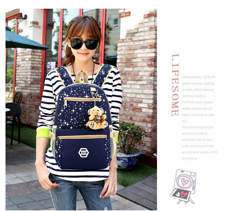 Женские школьные ранцы с принтом, милые рюкзаки со звездами для девочек и мальчиков, детские сумки, 3 шт., школьные портфели с медведем