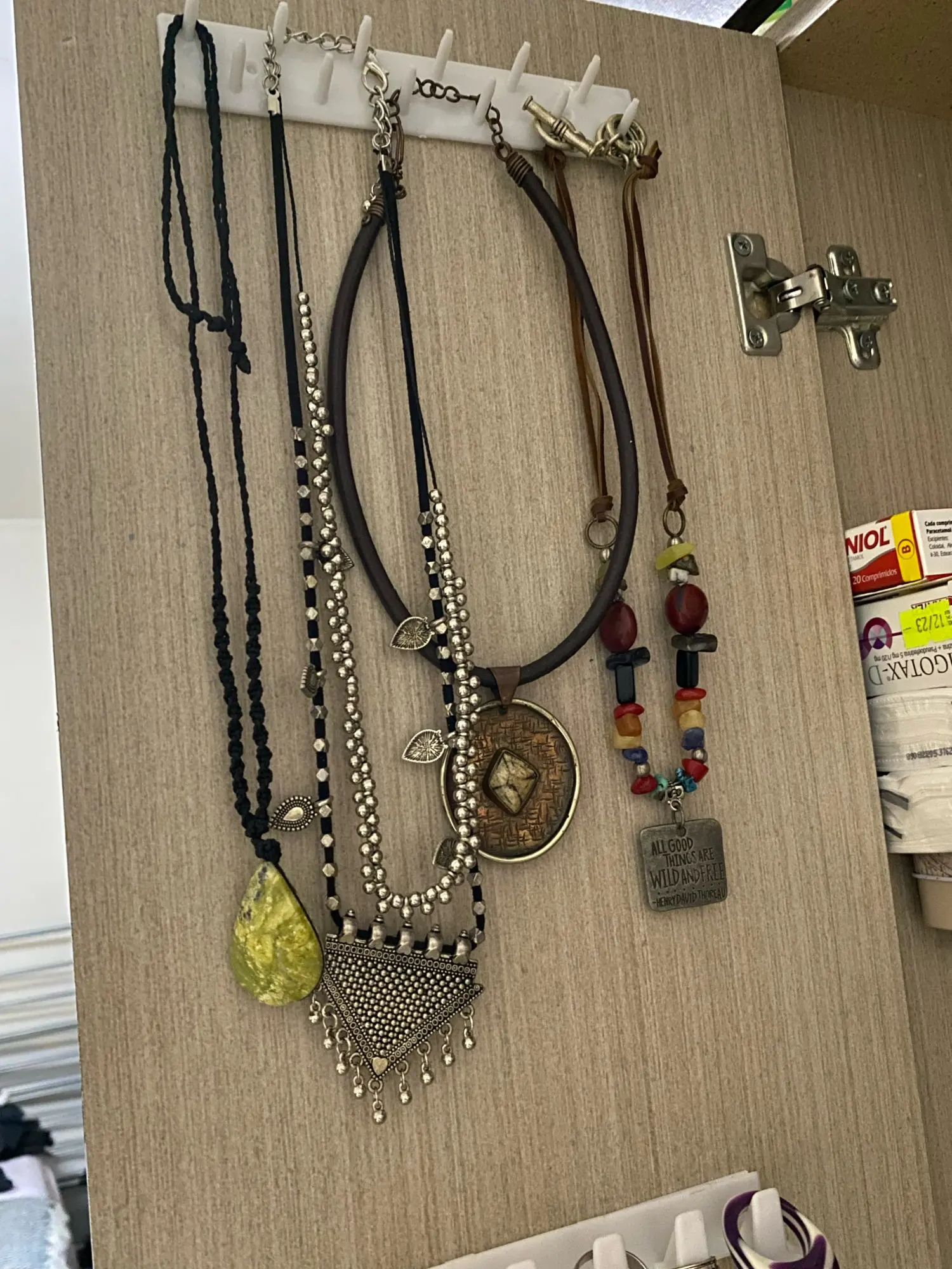 Эта настенная Подставка для украшений проста, функциональна и имеет много места, чтобы держать ваши серьги, ожерелья, кольца и многое другое.