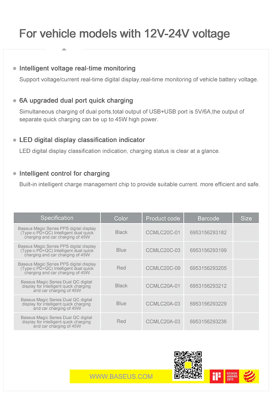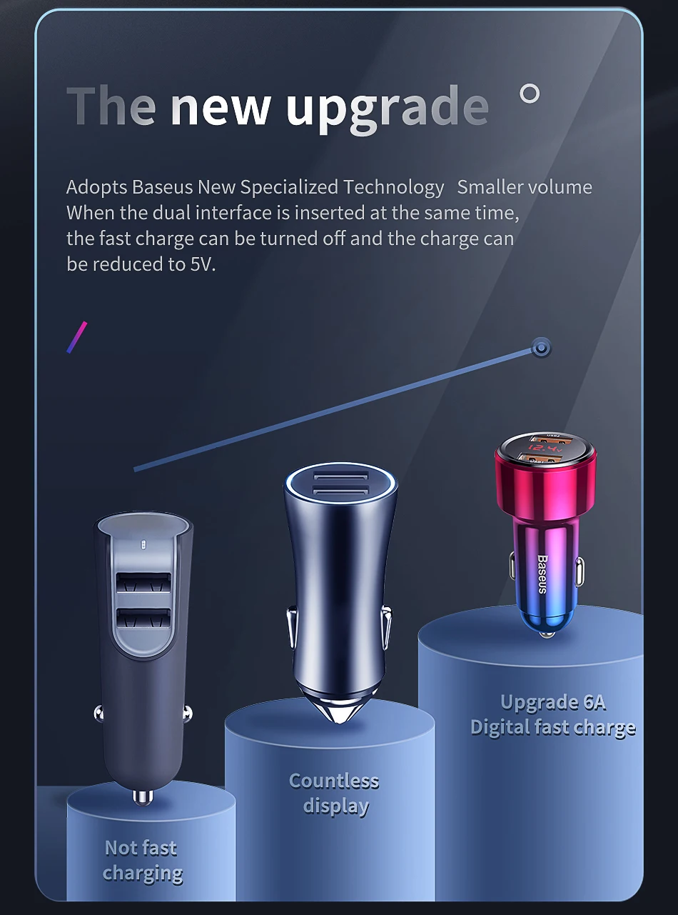 Автомобильное зарядное устройство BASEUS для телефонов iPhone Android с поддержкой быстрой зарядки