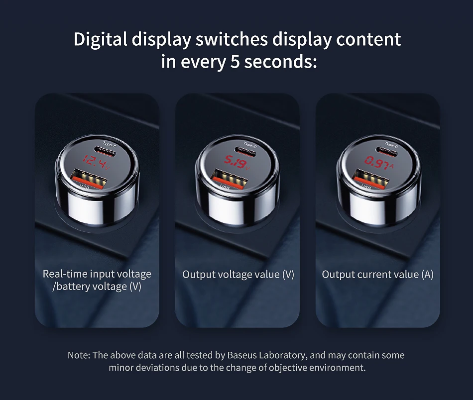 Все работает, при подключенной нагрузке показывает напряжение в сети, напряжение зарядки и ток зарядки, без нагрузки - просто показывает напряжение в бортовой сети. Быстрая зарядка точно работает!!! Выглядит классно, такой и подарить можно, неплохой подарок - полезный и выглядит достойно!
