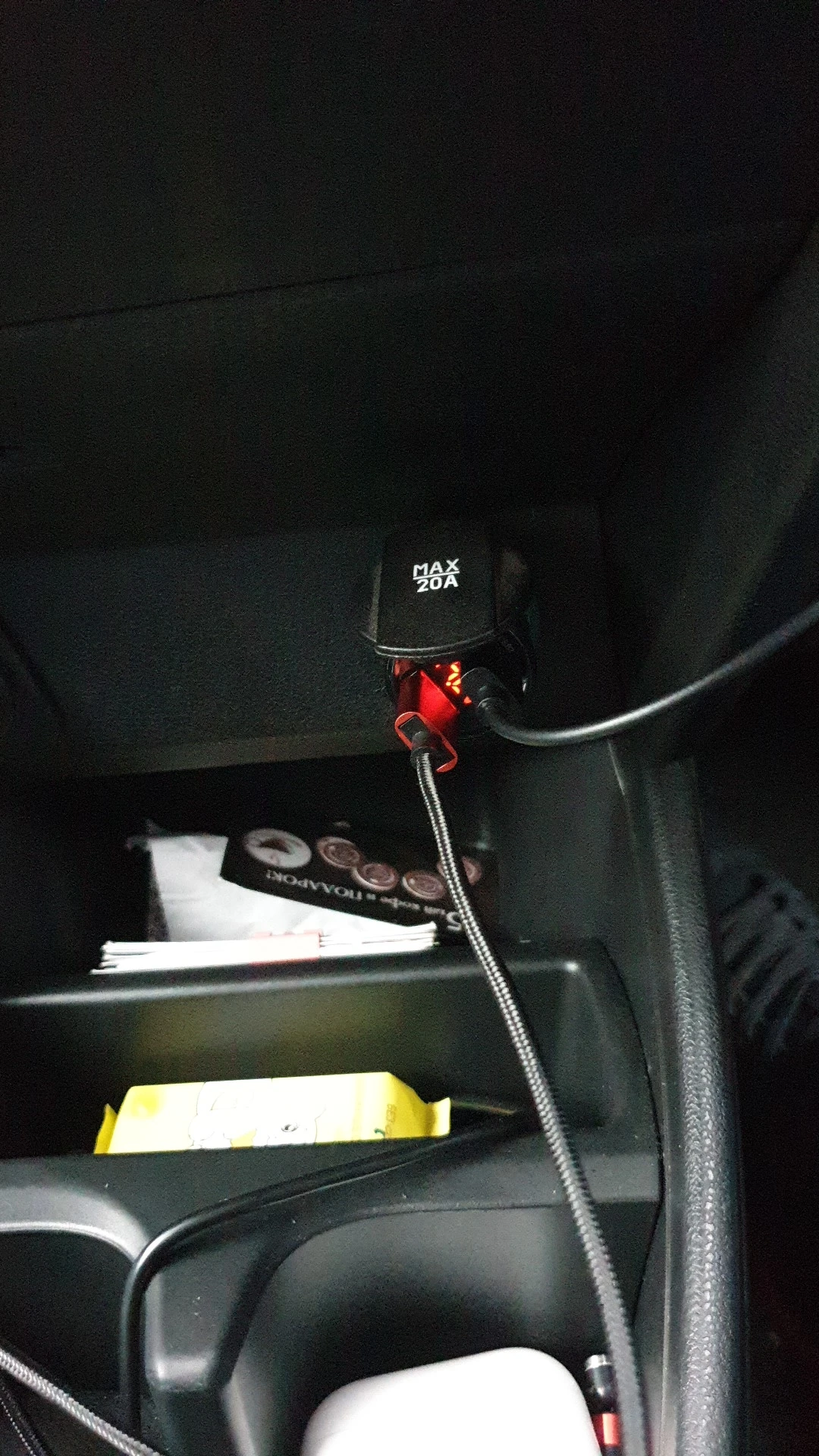 Заказ оплачен 09.02. Выслали только 19.02. Трек-номер отслеживаемый. Пришло в отделение почты россии 03.03. Упаковано в пакет пупырку. Пришло целым. Фирменная коробка. Зарядка затянута в защитную пленку. Тип-ц сверху, снизу стандартный юсб. Посередине экран. Подсветка красная, но ближе к оранжевому. Цифры четкие. При подключенном потребителе показывает вольтаж авто, вольтаж потребителя и силу тока потребителя. Регистратор потребляет 0,4А. При подключенном Xr по 18Вт кабелю выдало 2,5-2,6А. В общем отличная зарядка.