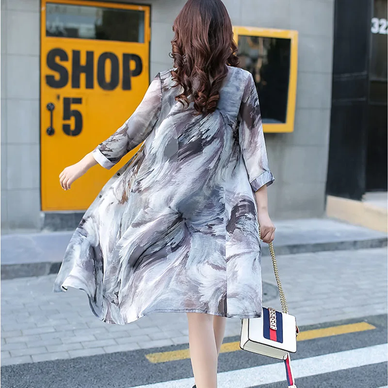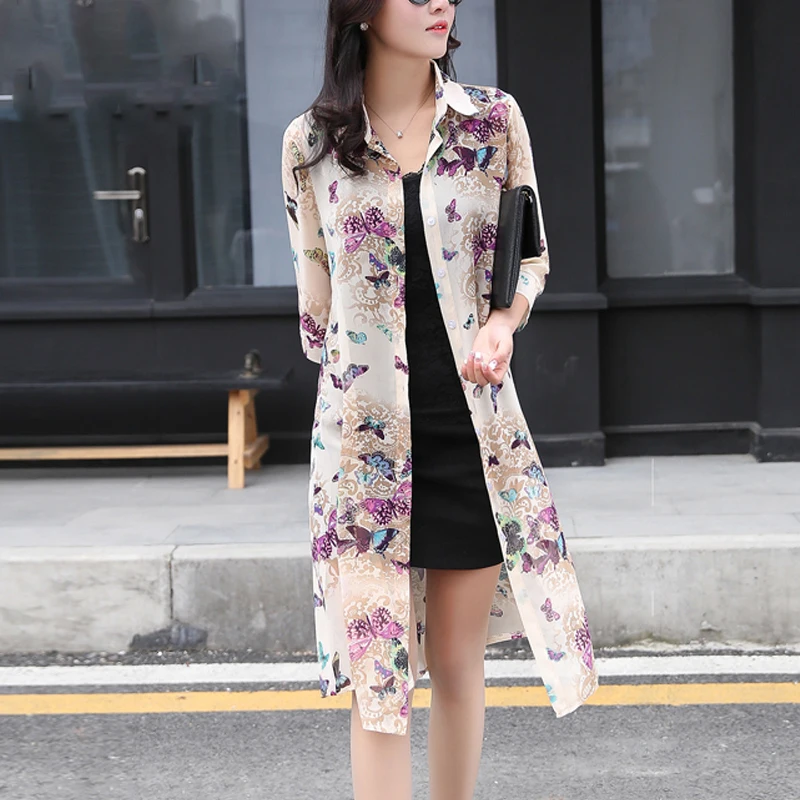 Женская шифоновая блузка с коротким рукавом, длинная свободная блузка с цветочным принтом, 4152 50