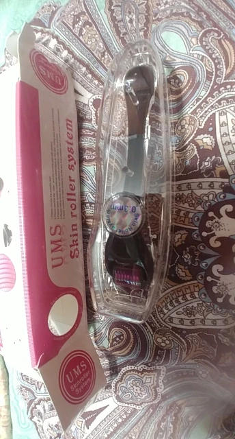 Долгая для России доставка, но в целости, упаковка мятая, 0.3 мм максимум, слабовато, процедура приятная, вроде, минимальный эффект под глазами и на носогубке есть, на лбу пока нет. Храню в хлоргексидине. В среднем, нормальная игрушка за свои деньги, рекомендую.
