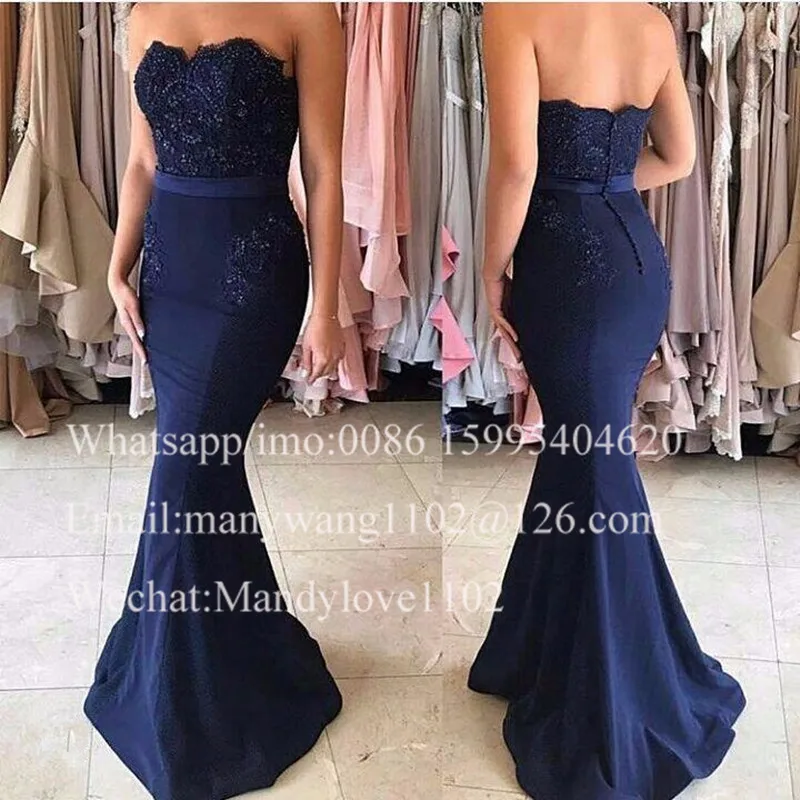 Темно-синие платья подружки невесты с кружевной аппликацией, длинное платье подружки невесты, Vestido De Festa, платье подружки невесты под 100, свадебное платье для гостей