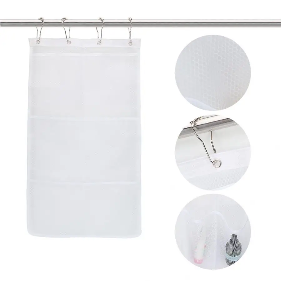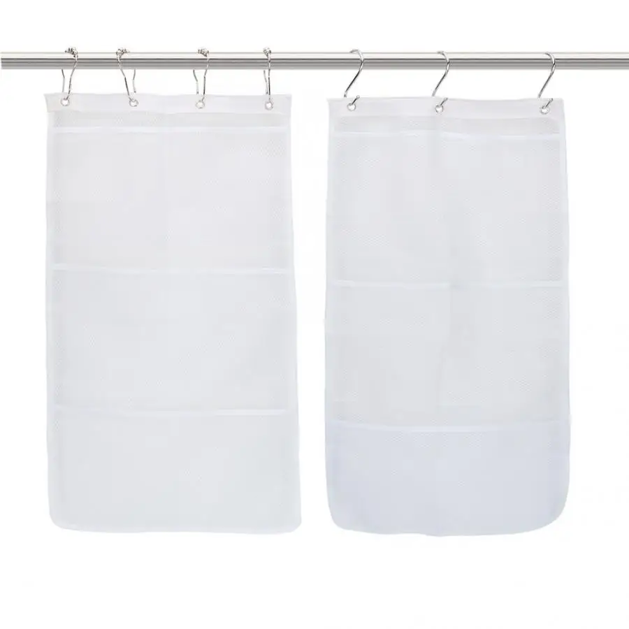 Легко повесить, с 3 большими люверсами и металлическими крючками, что делает органайзер для душа удобным, чтобы повесить на крючок или стержень.