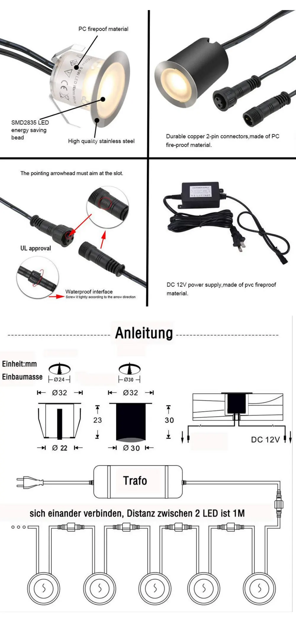 1) Мини Размеры дизайн: 32 мм (1,25 дюймов) x H22mm (0,8 дюймов) Мини Размеры s, которые могут светильник на данный момент двор2) Энергосбережение и дизайн окружающей среды: работа с 12 вольтами (низкое напряжение) постоянного тока, энергосбережение и экологичность.3) съемное и параллельное подключение: 16 шт. ламп являются съемными и параллельными, вы можете установить их только в соответствии с вашими потребностями.4) гарантия безопасности: светодиодный светильник IP67 водонепроницаемый, безопасный для использования в помещении и на улице5) широкое использование: он предназначен для освещения ваших уличных дорожек, лестниц и палуб, теплый светильник делает ваш дом теплым и безопасным