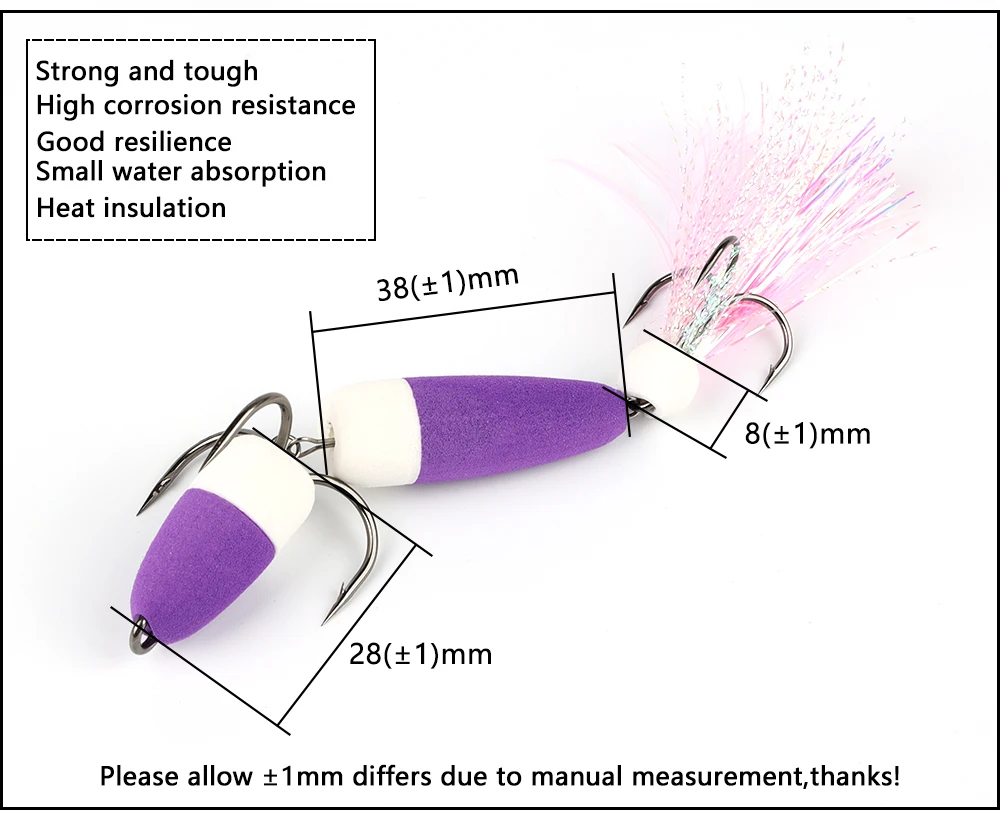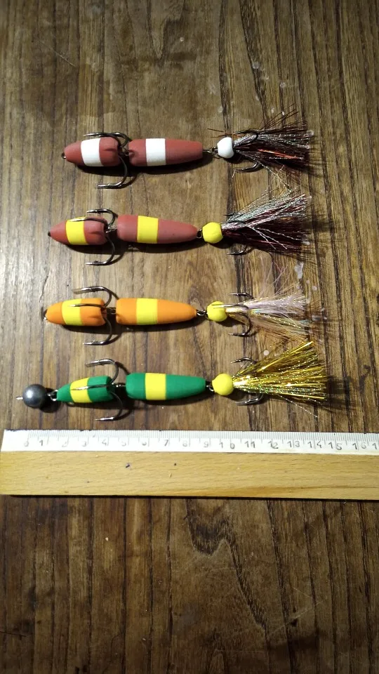 Товар как на картинке. Вес соответствует. Цвета яркие. Брал 4 разных, все ок. Как работают не проверял, уже снег выпал. Паролона на пару паклевок хватит. Крючки хорошие, острые. В целом все ок, но дороговато для таких приманок.