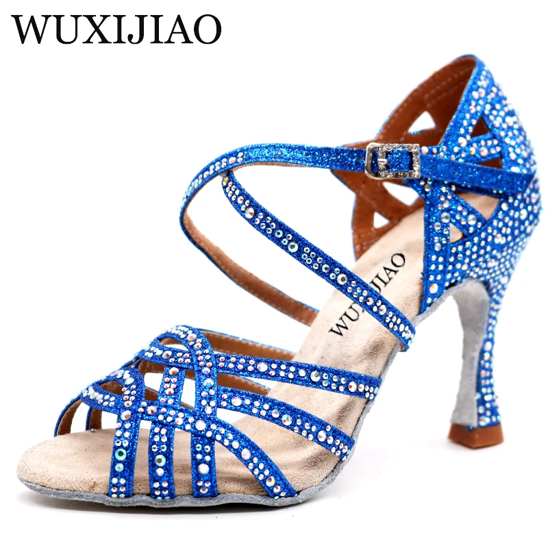Женские туфли для латиноамериканских танцев WUXIJIAO, золотистые, серебристые туфли на высоком каблуке 9 см с жемчугом, распродажа