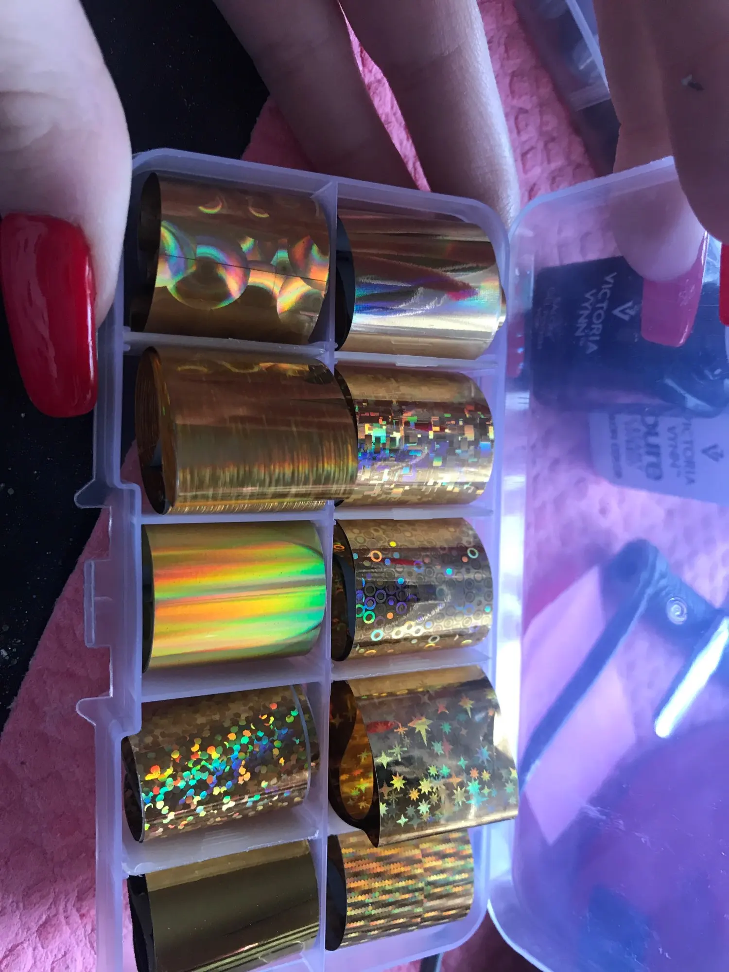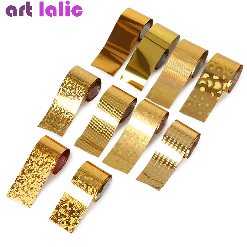Набор декоративных наклеек для маникюра, голографическое искусство ногтей фольги, 10 рулонов