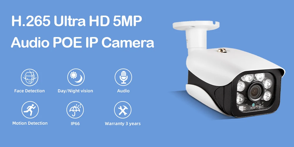 1. Ультра HD 5 Мп дисплей высокой четкости, улучшенное H.265 Сжатие видео;2. Ультра HD 5MP POE ip-камера, металлический материал, IP66 водонепроницаемый, подходит для внутреннего и наружного использования, надежная Домашняя безопасность;3. Поддержка питания через Ethernet, подключи и работай, простота установки;4. Поддержка распознавания лица, записи лица, воспроизведения лица, обеспечивает ультра высокое разрешение видео наблюдения, обеспечивая максимальную детализацию и четкость доступны;5. Поддержка аудиозаписи, все камеры встроены в микрофон;6. Поддержка Ultra HD дневного ночного видения;7. Поддержка IR-CUT переключателя двойного фильтра, днем и ночью для достижения мониторинга, цвет не является частичным искажением цвета;8. Поддержка обнаружения движения, оповещения по электронной почте, воспроизведения видео и многоязычности;9. Поддержка Android,Iphone,Ipad,PC,VMS,P2P view;10. Удаленный доступ в любом месте, в любое время;
