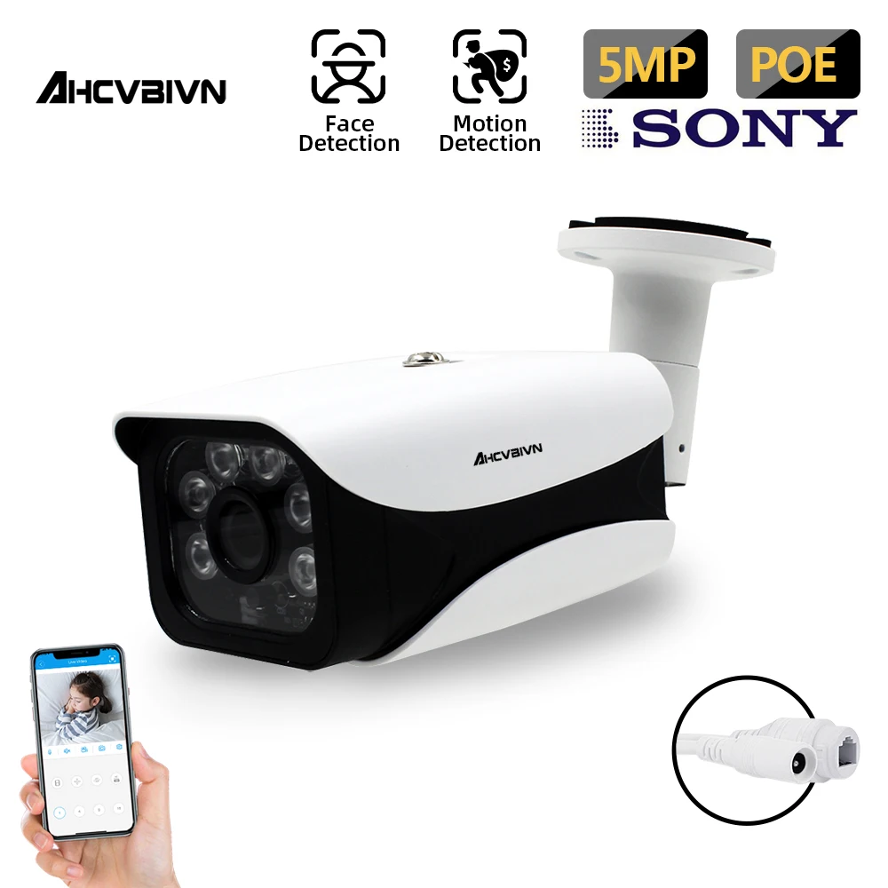 IP-камера видеонаблюдения AHCVBIVN H.265 5 МП, цилиндрическая IP-камера POE 5 МП для системы POE, NVR, водонепроницаемая уличная светодиодная ИК-подсветка с ночным видением