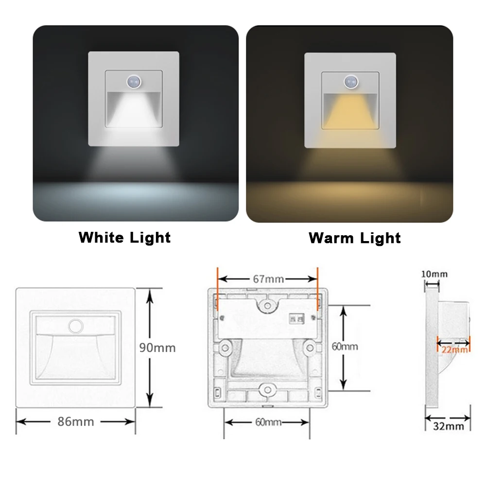 Светильник с датчиком движения для лестницы и ступеней, Автоматическая подсветка прихожей, Умная подсветка коридора, Лампа встраиваемаяв стену, Дополнительный свет для ночи, Ночной фонарь, Белый светильник 1.5W