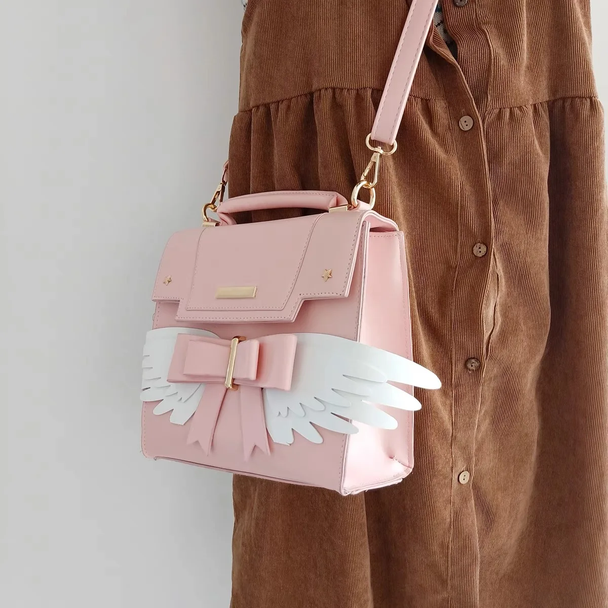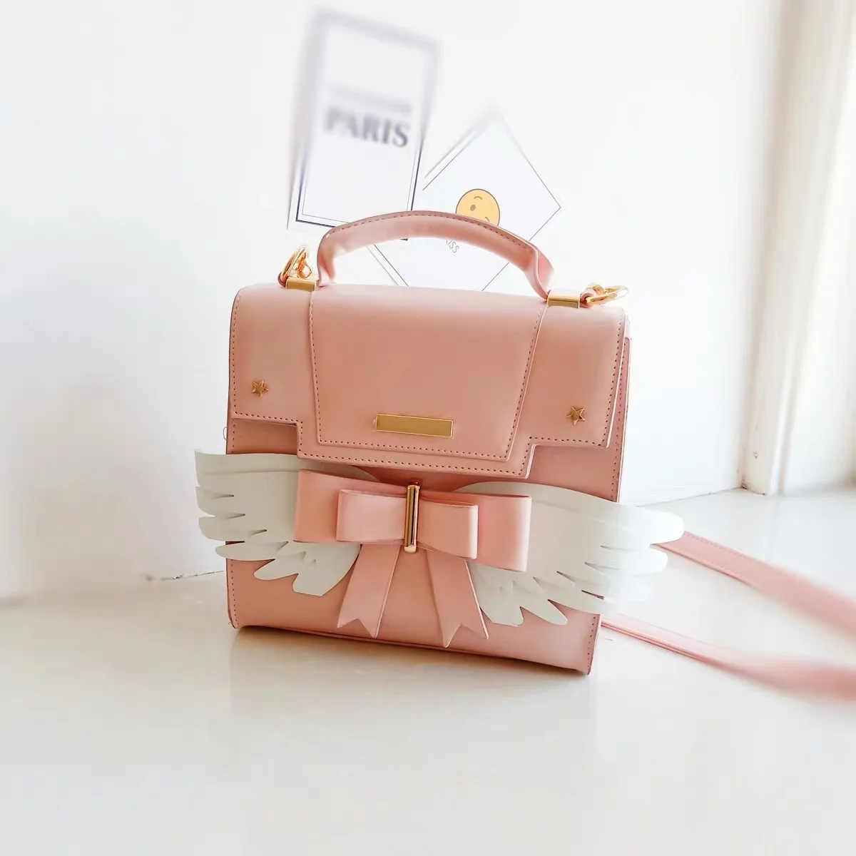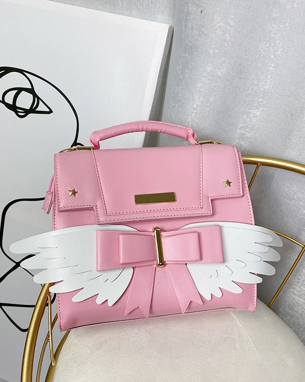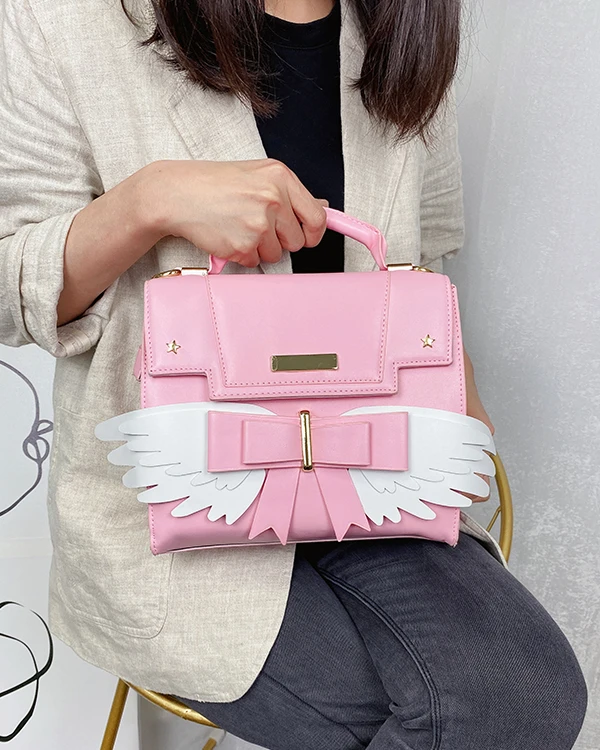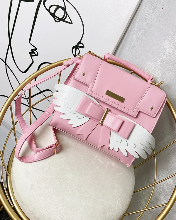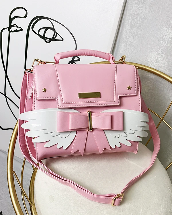 Сумка через плечо женская, с крыльями Лолиты и бантом, розовые сумочки