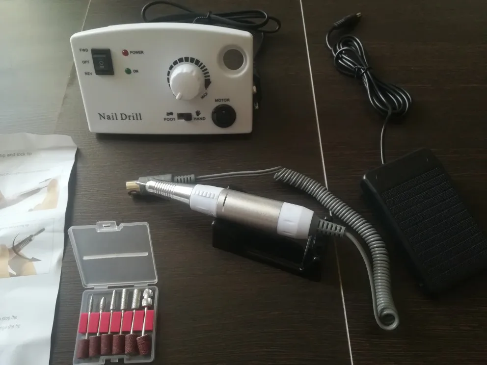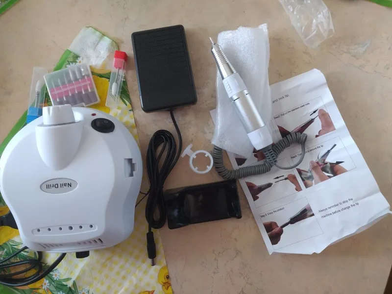 товар довольно таки не плохого качества. на свою цену твердая 5. но больше 2000 я бы не заплатила , не так уж он и хорош. доставка была 30 дней из Китая привезли домой курьером фрезы так-то норм можно что нибудь придумать Но я так и не поняла что делать с этой педалью она просто не работает я итак и сяк а она никак после того как спилила 1 ноготь он почему то начал жужжать и перестал работать как перестал жужжать, начал работать он чисто из пластика, думаю если 1 раз упадет, разобьётся в мелочь я как бедная личность пожалела денег и решила хоть что-то получить и попросила подарок мне положили 2 пилки такого себе качества но бесплатно так что мне нравится