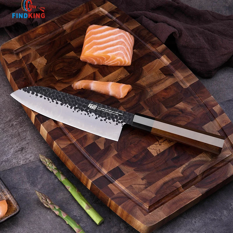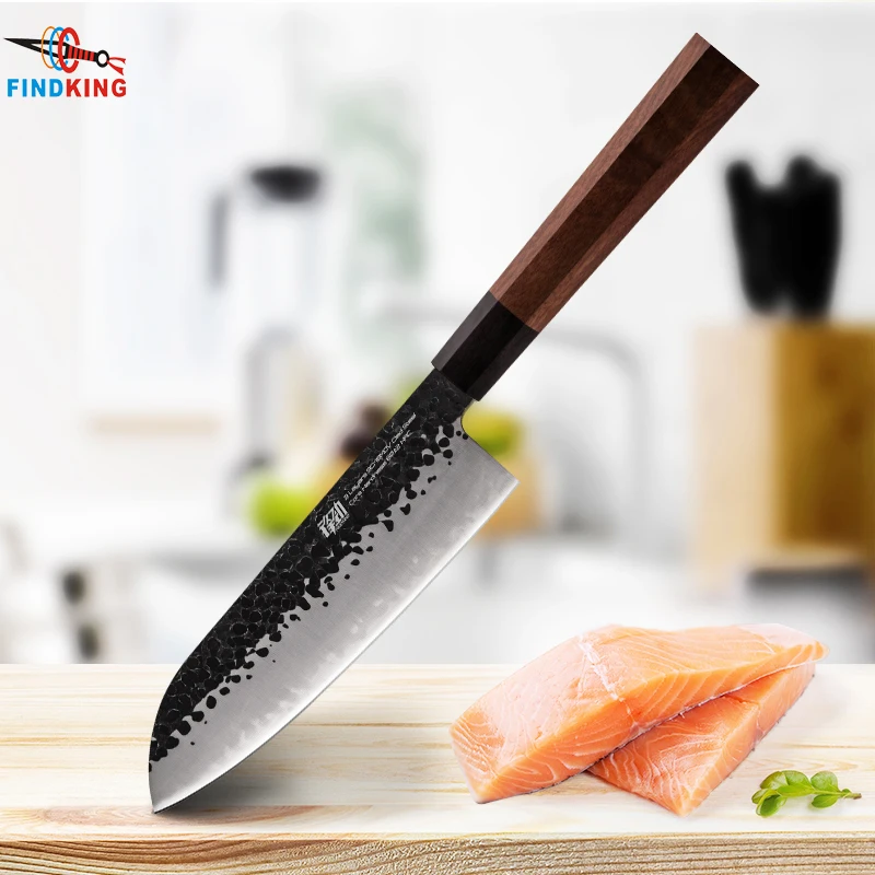 FINDKING 7-дюймовые поварские ножи из нержавеющей стали, плакированные стальные японские профессиональные ножи с восьмиугольной ручкой для суши, кухонный нож сантоку