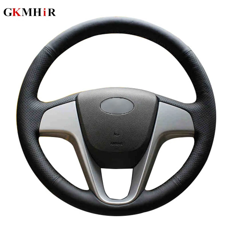 GKMHiR "сделай сам" Черный Руль Обложка из искусственной кожи чехол рулевого колеса автомобиля для Hyundai Solaris Verna I20 Accent